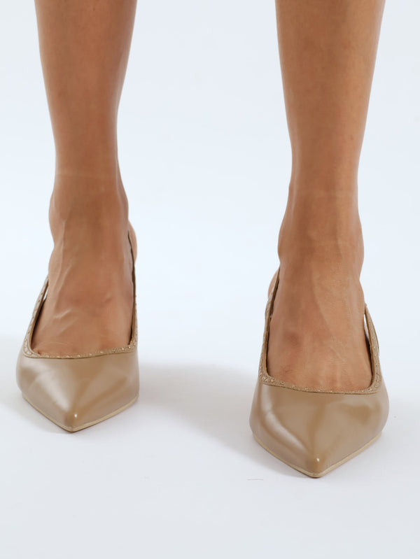 Mid Shaped Stud Detail Slingback Court Heel - Natural
