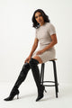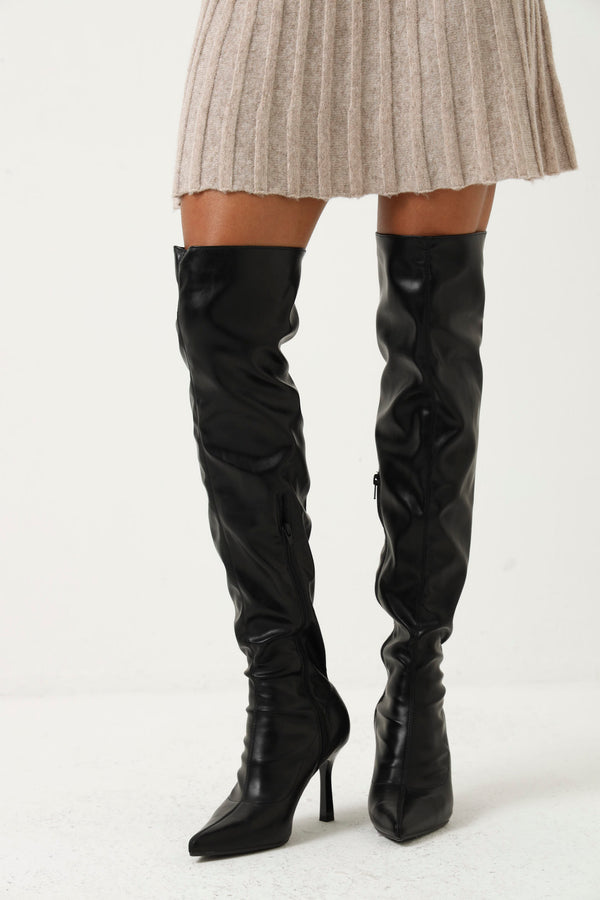 Pu Over The Knee Heeled Sock Boot - Black