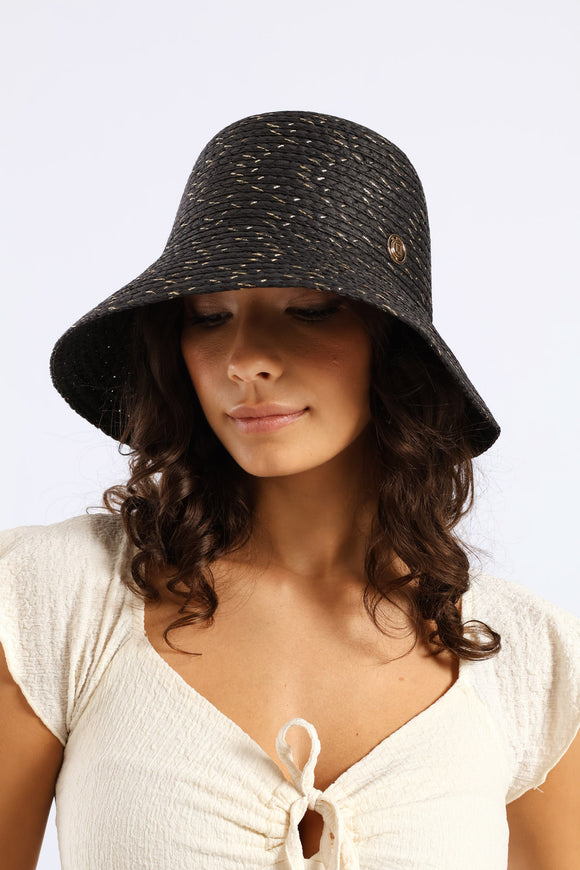 Crochet Metallic Bucket Hat - Black