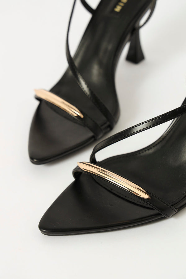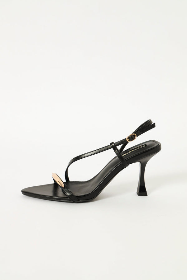 Hi Shaped Asymmetrical Strappy Heel Sandal - Black