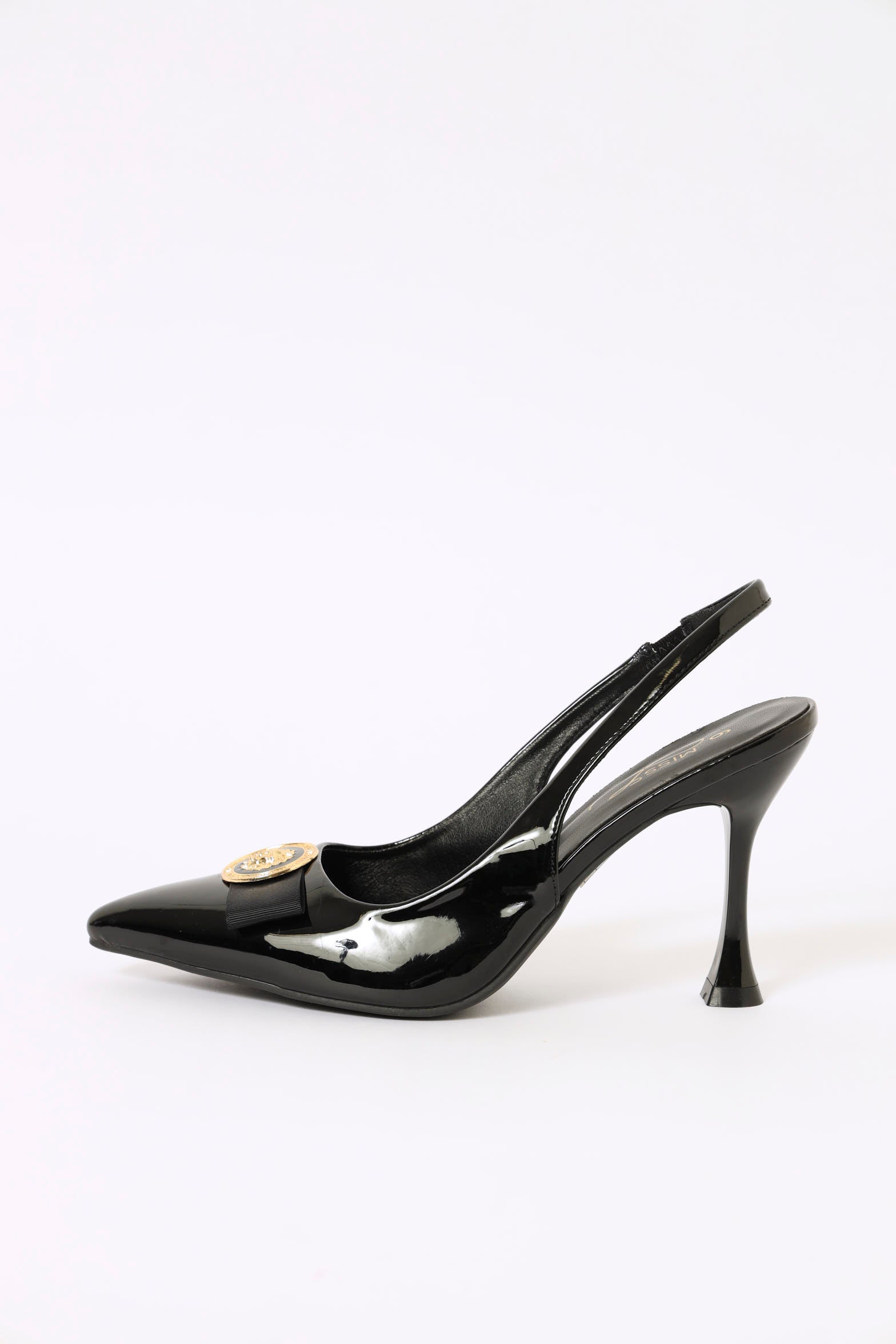 Hi Shaped Pointy Trimmed Bow Slingback Court Heel - Black