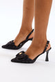 Elevate your style with the Hi Shaped Slingback Court Heel in black. This sleek, sculpted heel offers a refined silhouette that complements both professional and evening wear. Featuring an adjustable slingback strap for a secure, comfortable fit, it blends elegance with modern design to enhance any outfit effortlessly.