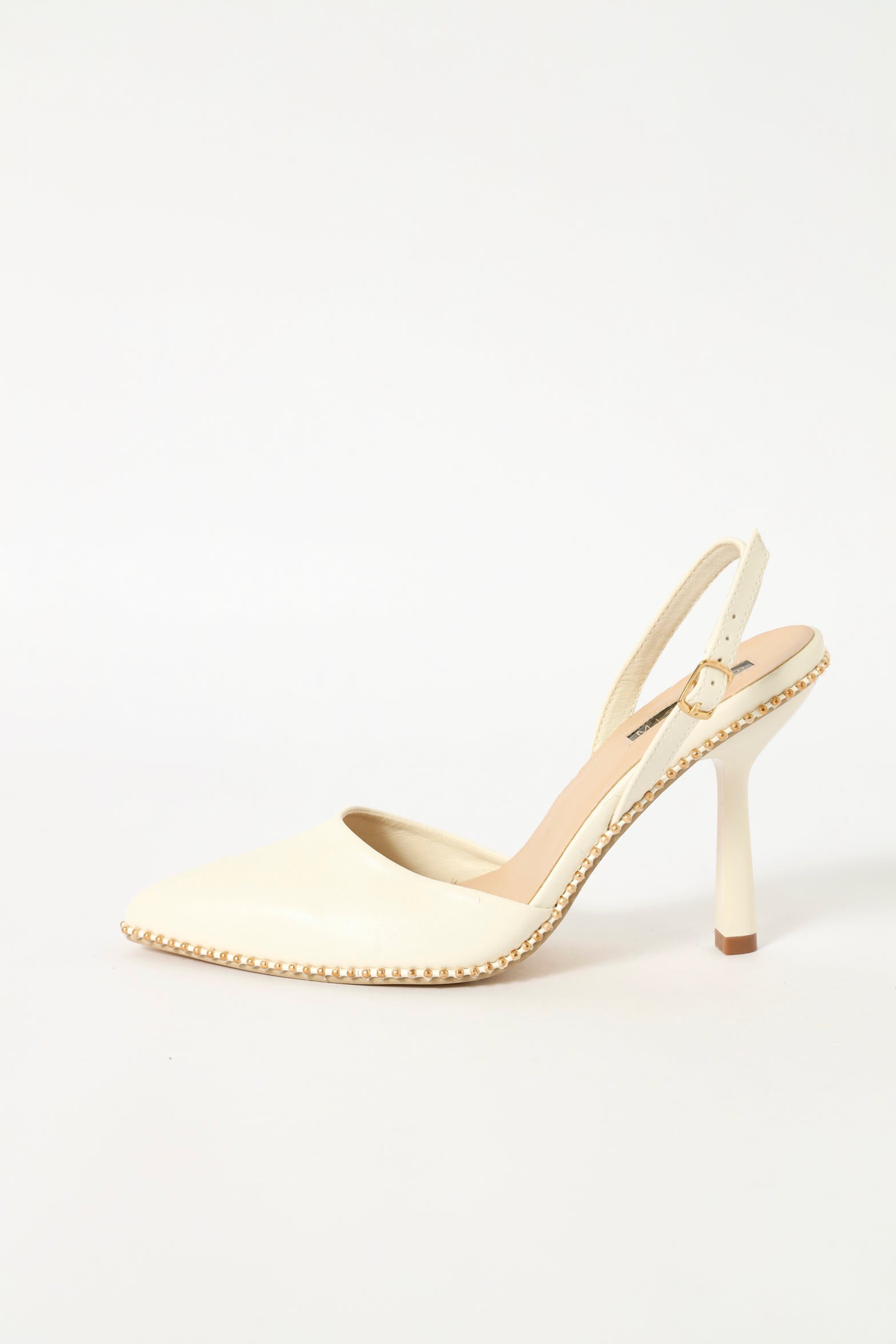 Hi Stiletto Pointed Slingback Court Heel - Off White