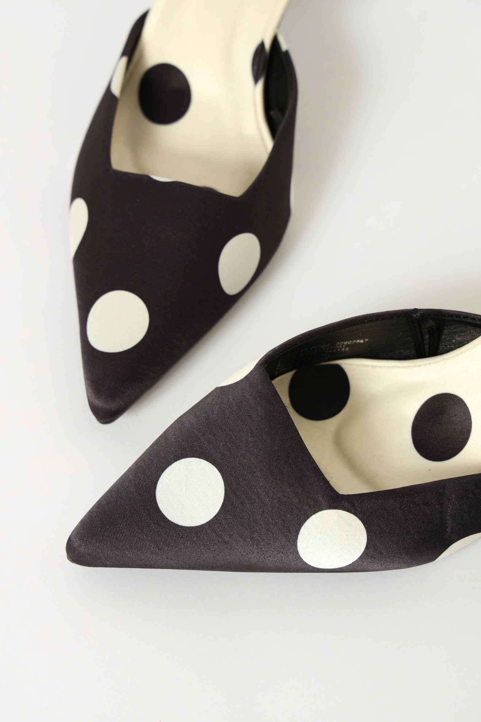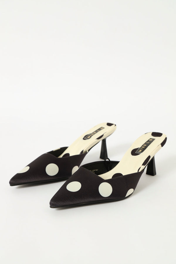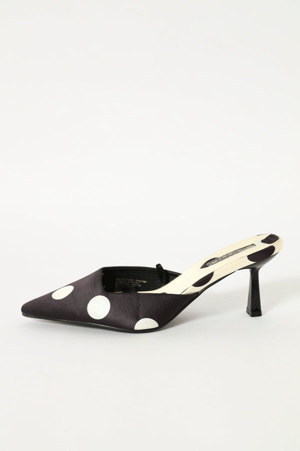Mid Heel Polka Dot Slip On Pointy Court Heel - Black/White