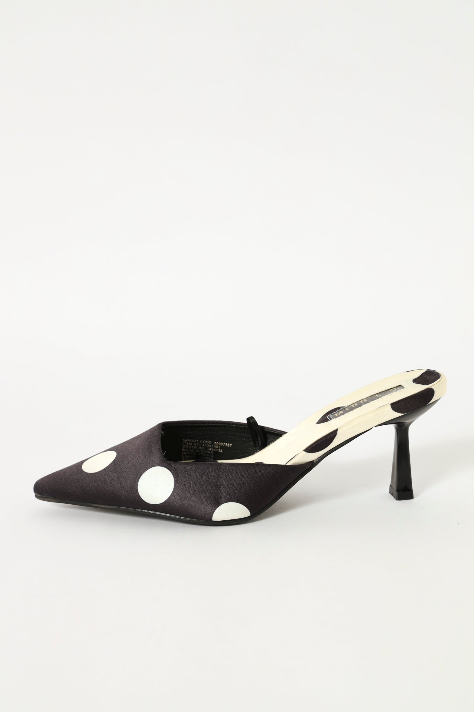 Step into effortless elegance with these slip-on court heels featuring a cheeky polka dot pattern in black and white. The pointed toe elongates your silhouette while the mid heel strikes the perfect balance between comfort and sophistication. No fussing with laces or buckles—just slip them on and go. Whether you're heading to the office, a night out, or somewhere in between, these versatile heels add a dash of personality to any outfit. The timeless dot design pairs beautifully with everything from dresses to tailored trousers, making them a playful essential for your shoe collection.
