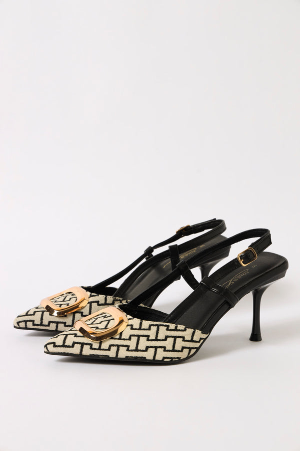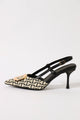 Mid Slingback Pointy Monogram Court Heel - Black