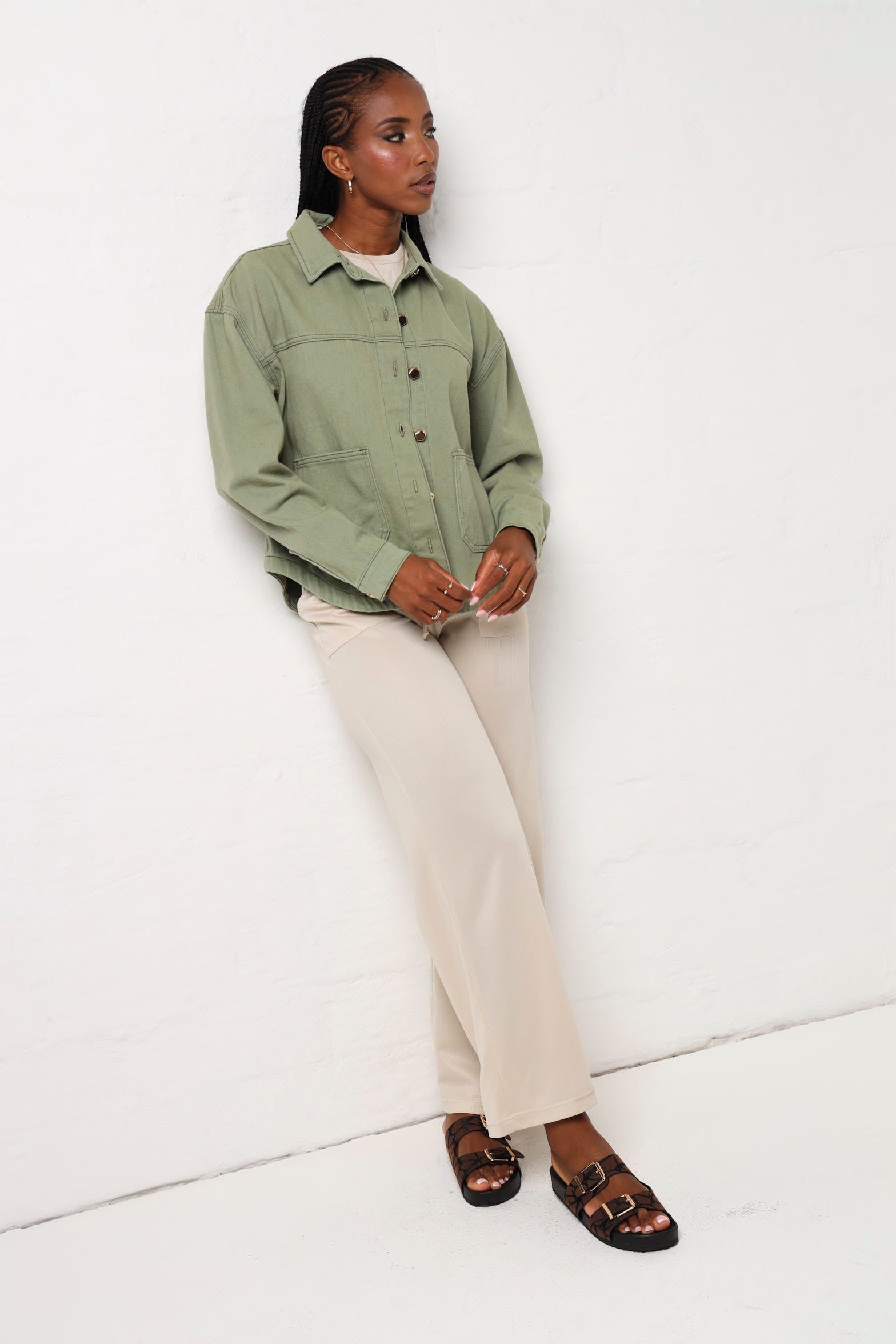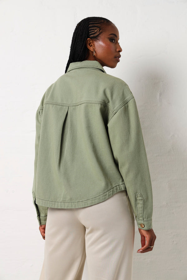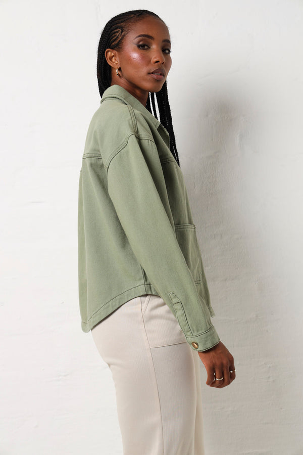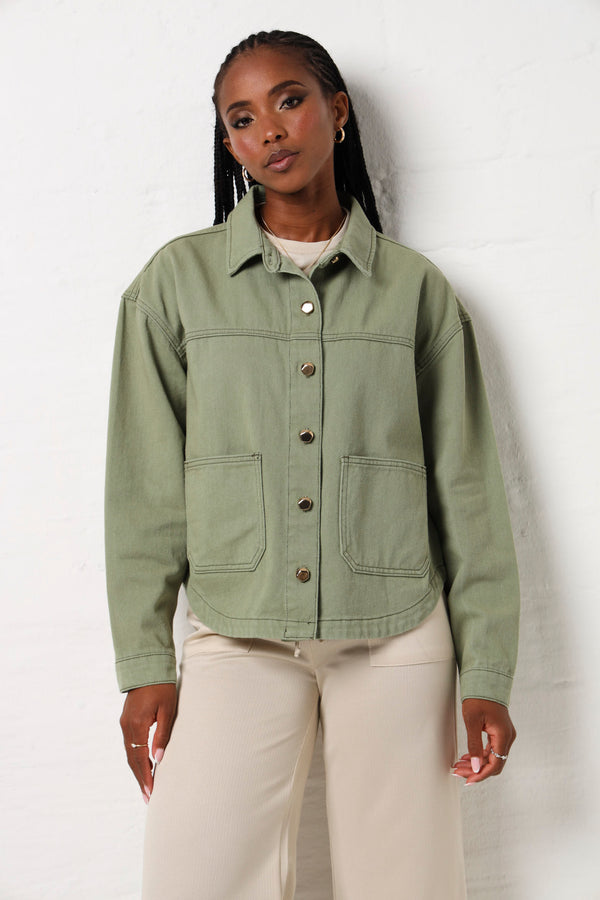 Meet your new favorite layering obsession a denim shacket that's part shirt, part jacket, and entirely fun. Dressed in a cool fatigue tone, it's adorned with fancy buttons that give serious personality to your everyday looks. Long sleeves mean you're ready for any season, while the relaxed shacket silhouette keeps things effortlessly cool. Throw it over everything and watch your outfit instantly level up. Because sometimes the best pieces are the ones that do double duty and look amazing doing it.
