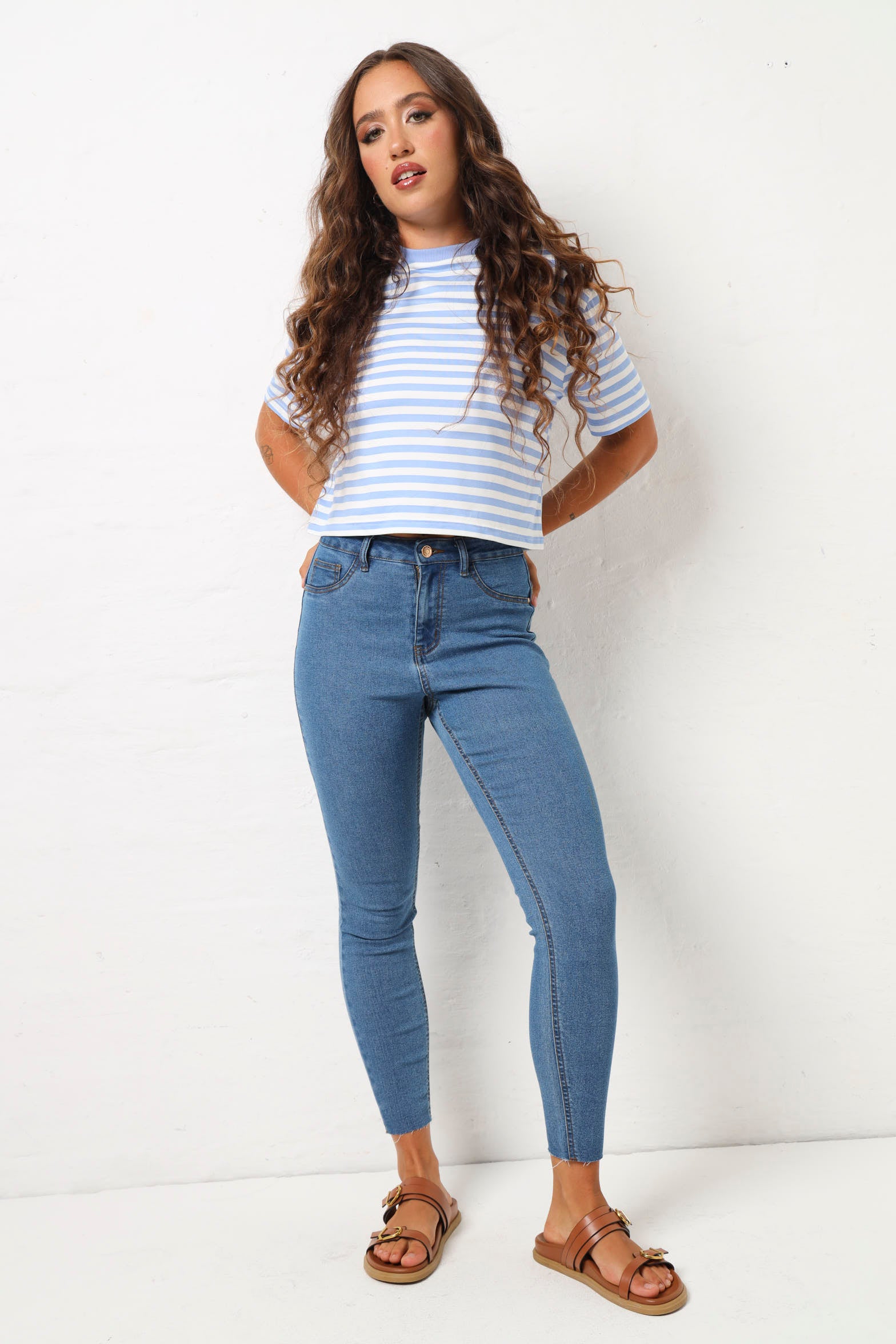 Elevate your style with our Hi Rise Ankle Grazer Skinny jeans! With a flattering high-rise waist and ankle grazing length, these jeans will accentuate your figure and add a touch of sophistication to any outfit. The stonewash finish adds a trendy touch, making these a must-have for any fashion-forward individual.