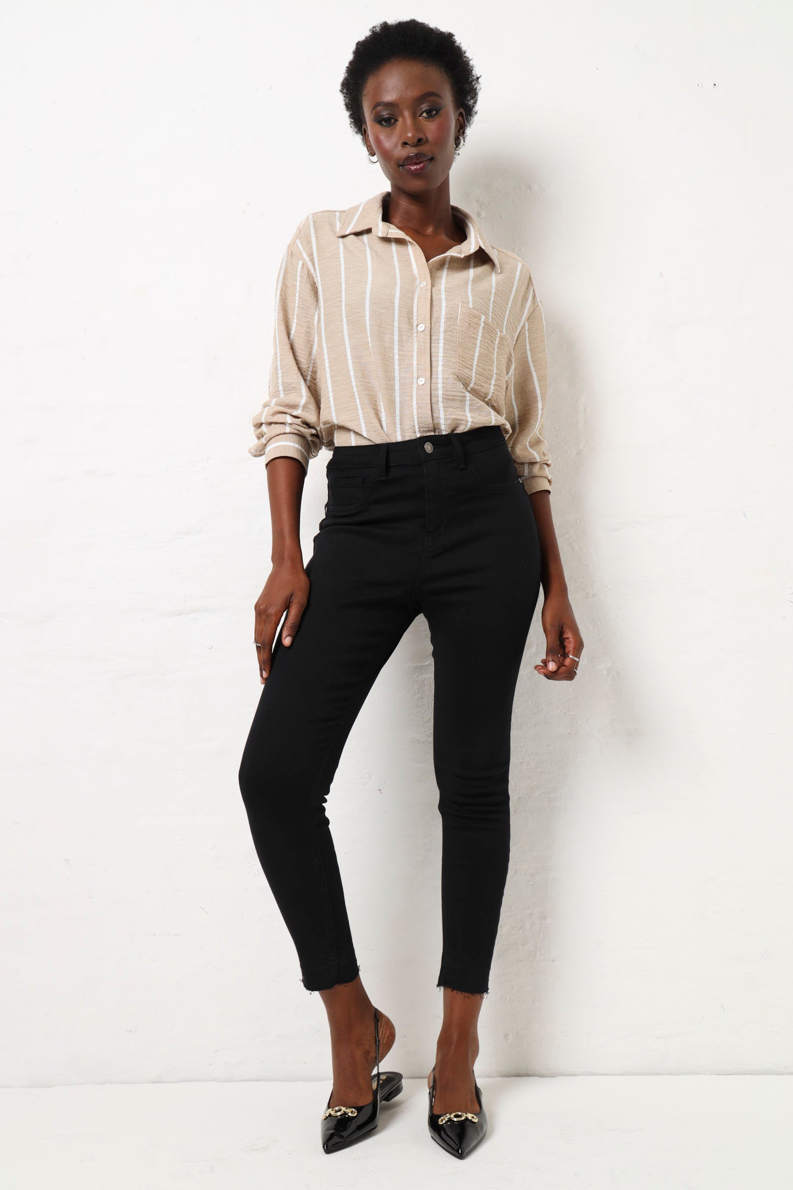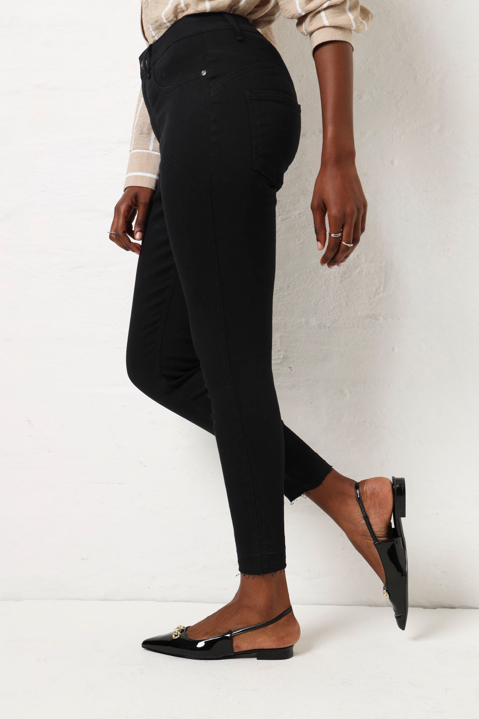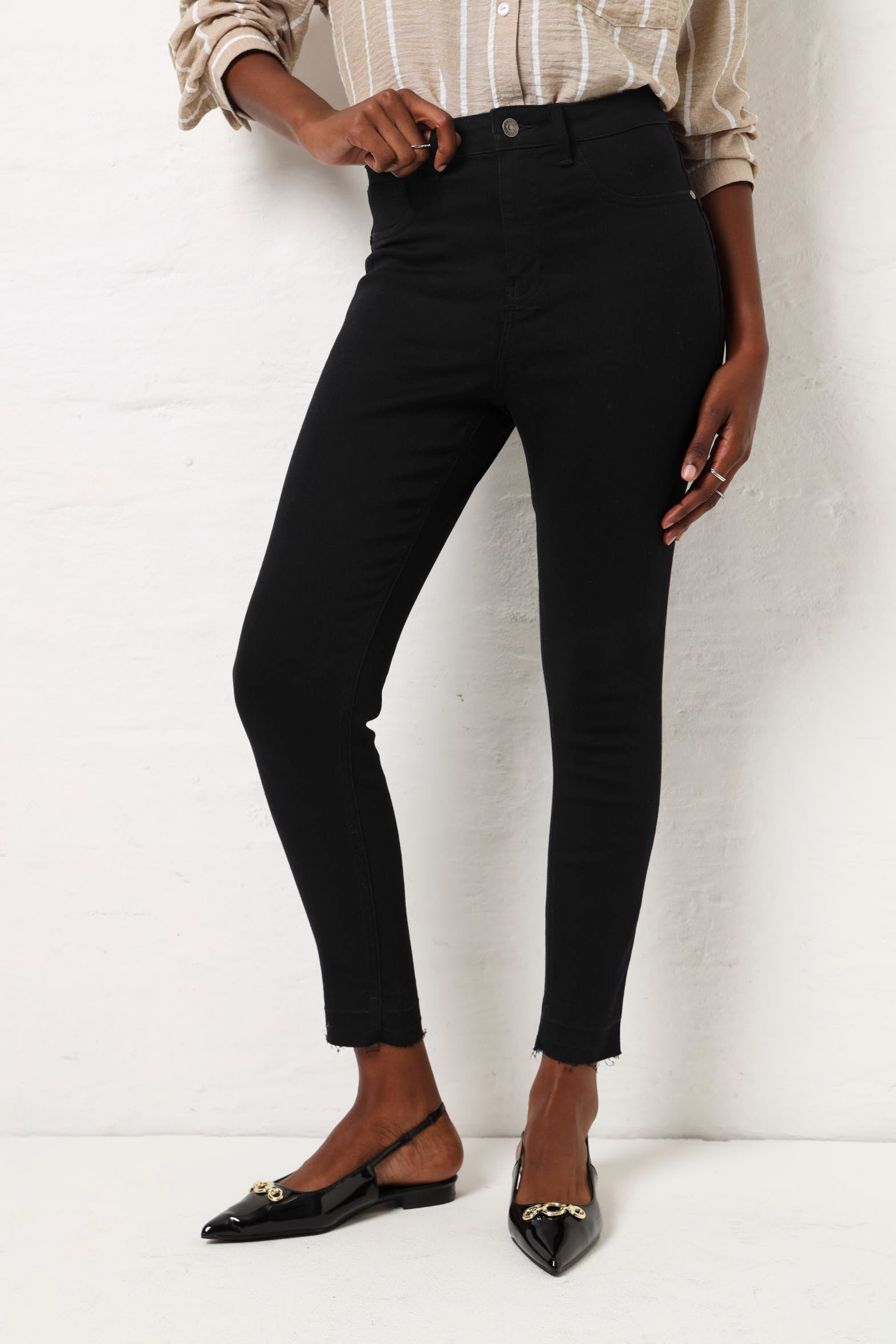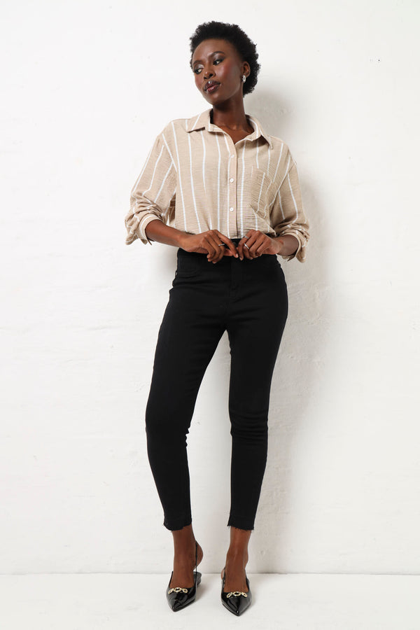 Elevate your denim game with our Release Hem Ankle Grazer Jean in sleek black. The released hem adds a touch of edgy elegance, while the ankle grazer length elongates the legs. Perfect for any occasion, this classic piece is a must-have for every stylish wardrobe.