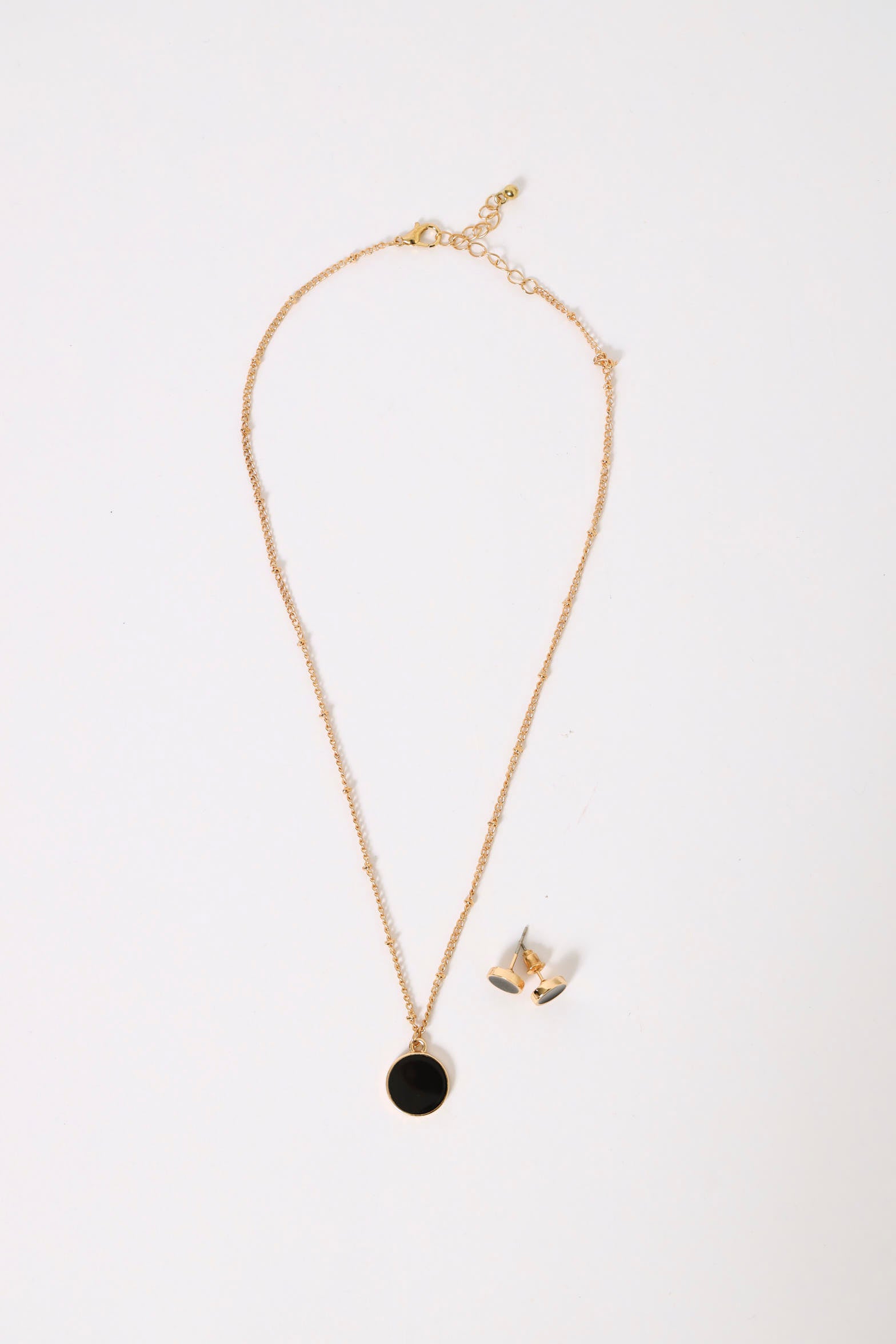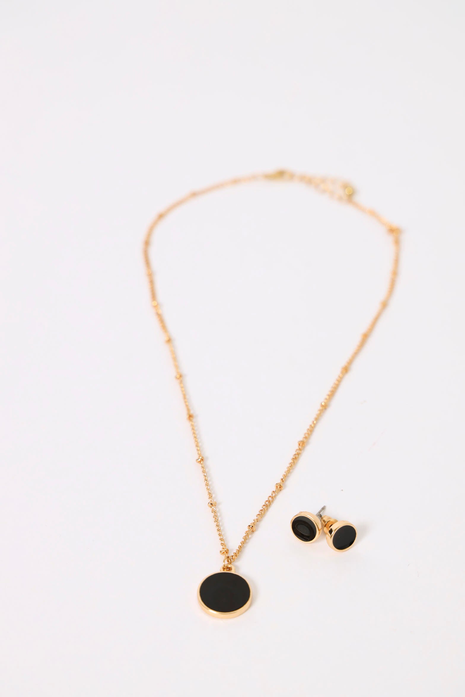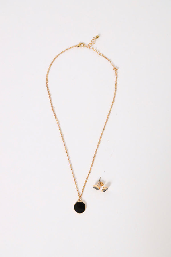 2 Pack Enamel Disc Necklace & Studs - Gold