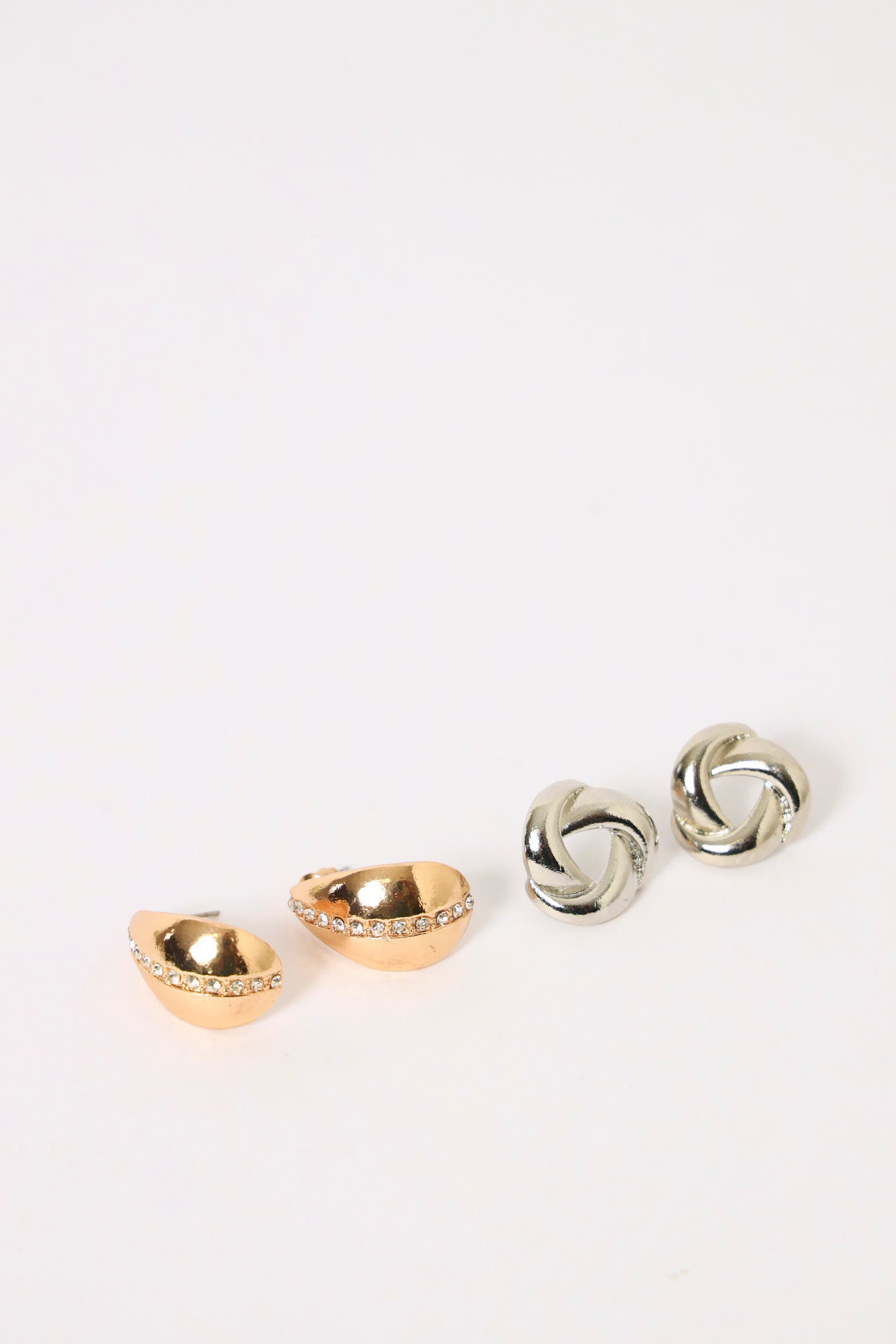 2 Pack Statement Knot & Diamante Teardrop Earrings - Multi