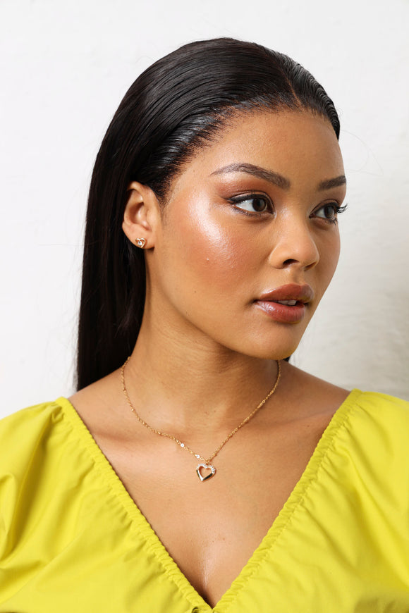 Diamante Heart Pendant & Matching Earrings - Gold