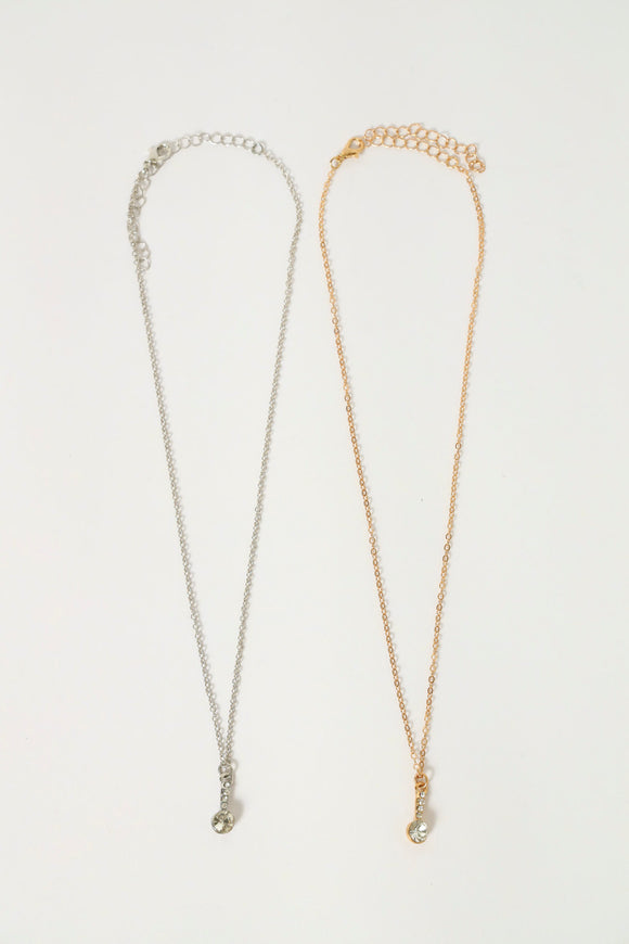2 Pack Diamante Drop Pendant Necklaces - Multi