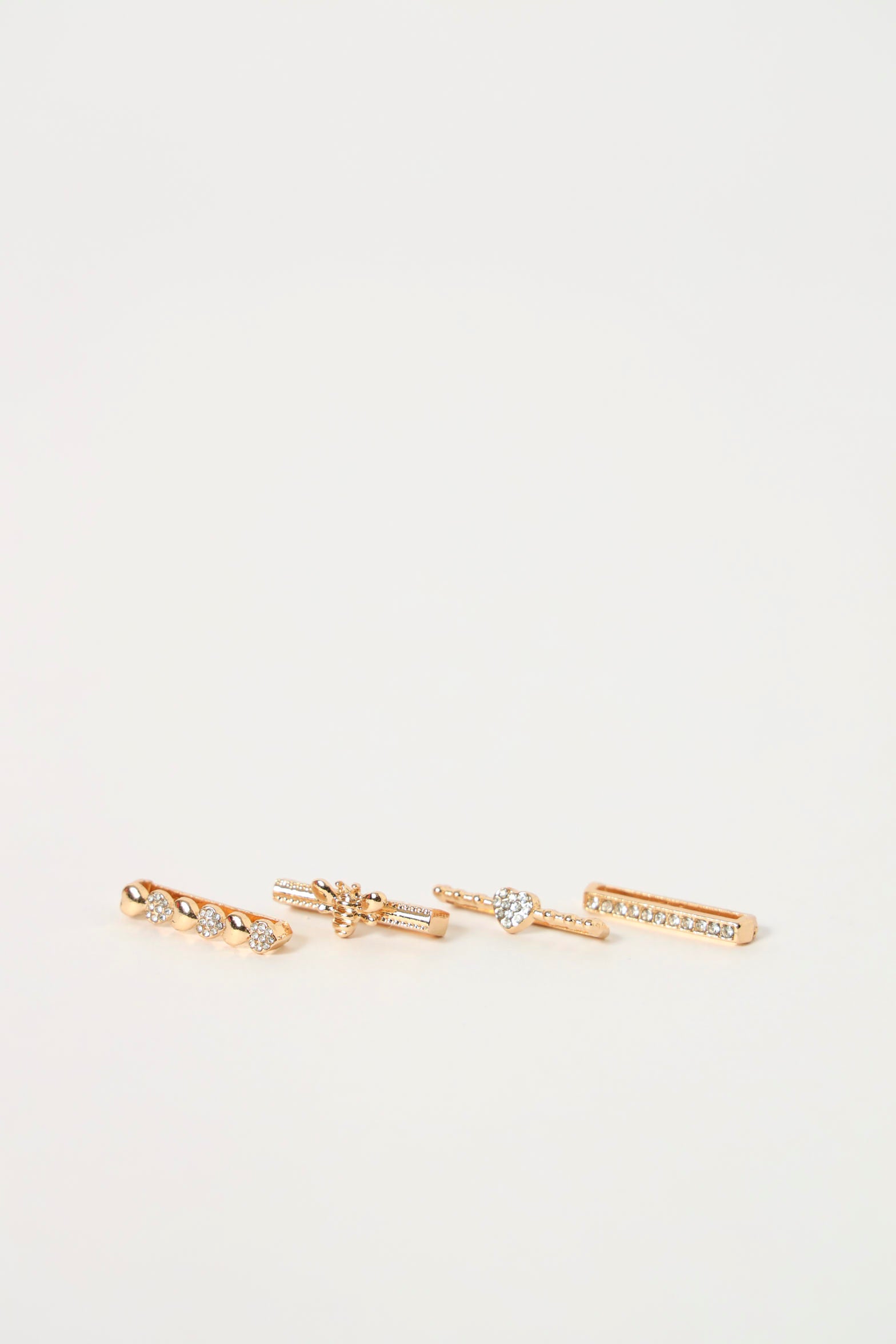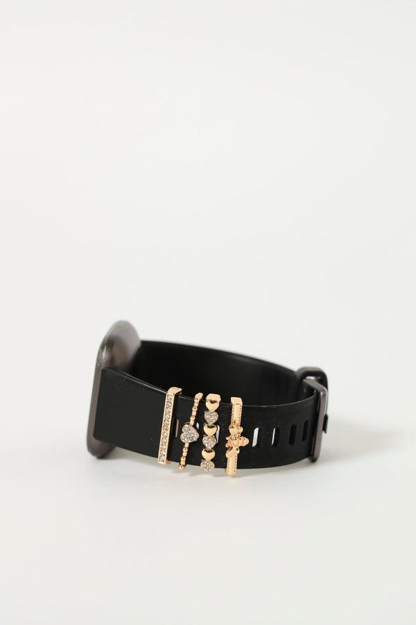 4 Pack Diamante Heart & Bee Smart Watch Charms - Gold