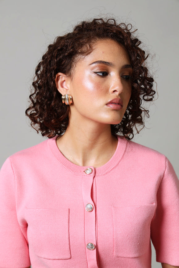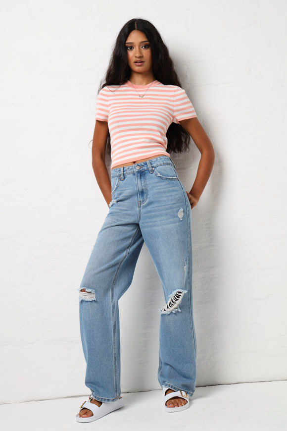 Stripe Knitwear Tee - Coral Multi