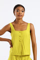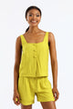 Brighten your wardrobe with this Button Front Linen Look Cami Top in vibrant Chartreuse. Its breezy, linen-like fabric keeps you cool while the playful button front adds a fun, flirty touch. Perfect for sunny days and casual outings, this cami brings effortless style and a pop of color wherever you go.
