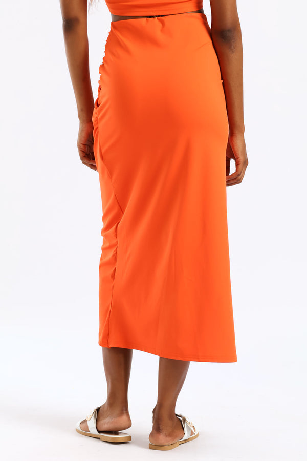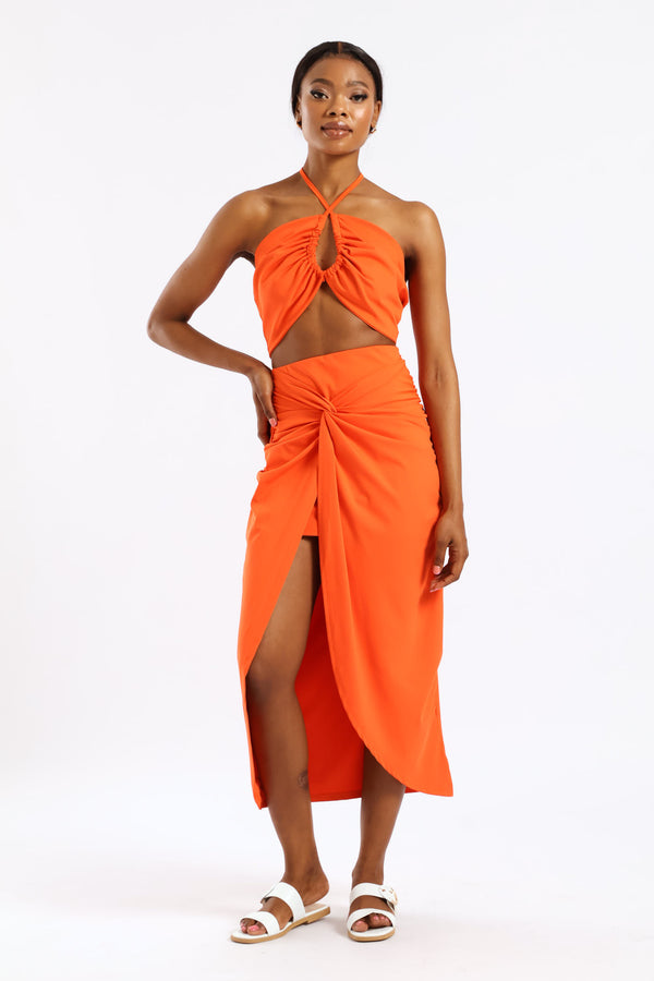 Brighten your wardrobe with the Maxi Twist Front Slinky Skirt in vibrant orange. Its playful twist detail and flowing slinky fabric create a flattering silhouette that moves with you. Perfect for adding a fun pop of color to any outfit, this skirt effortlessly blends comfort and style for day-to-night wear.