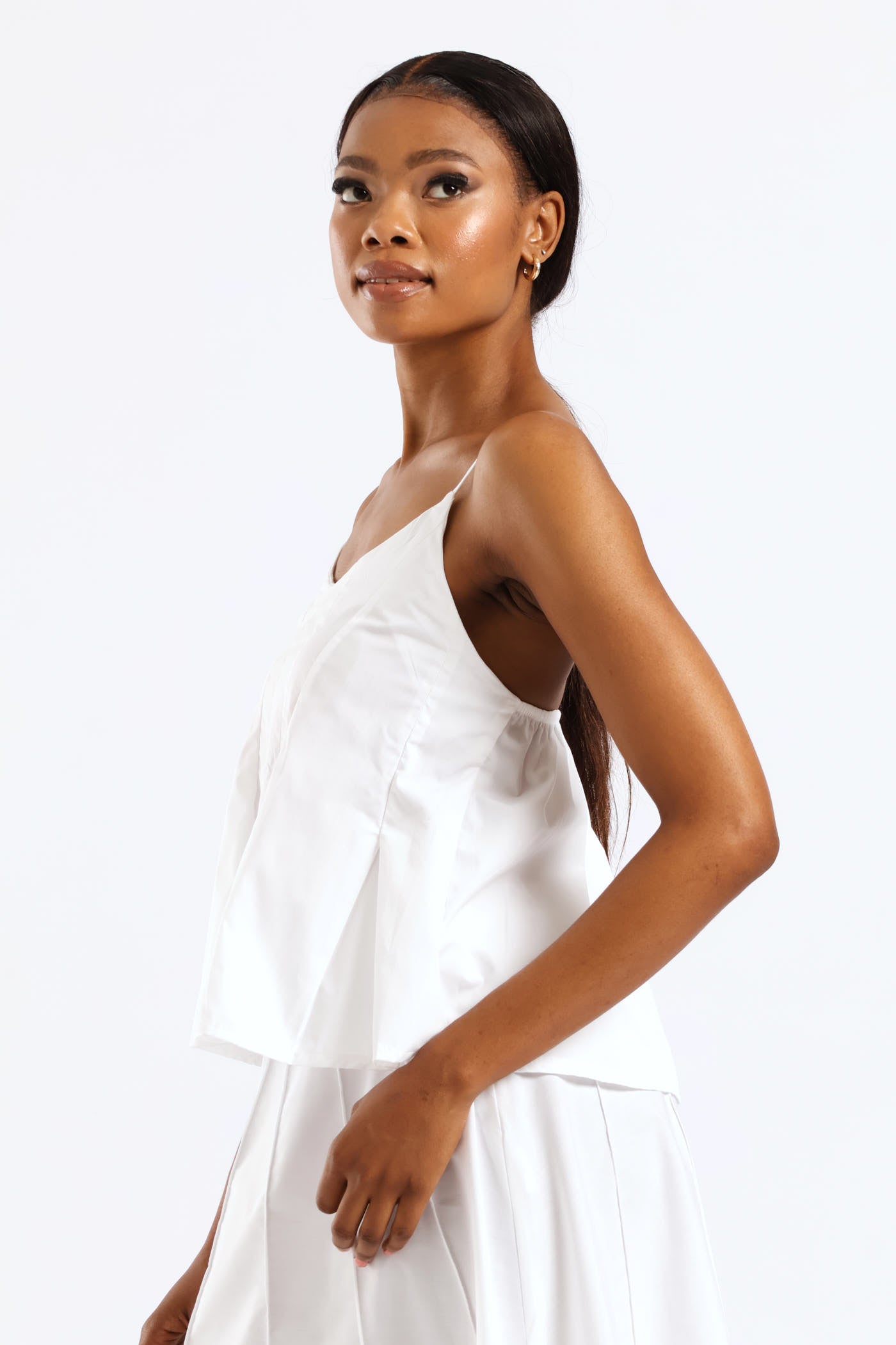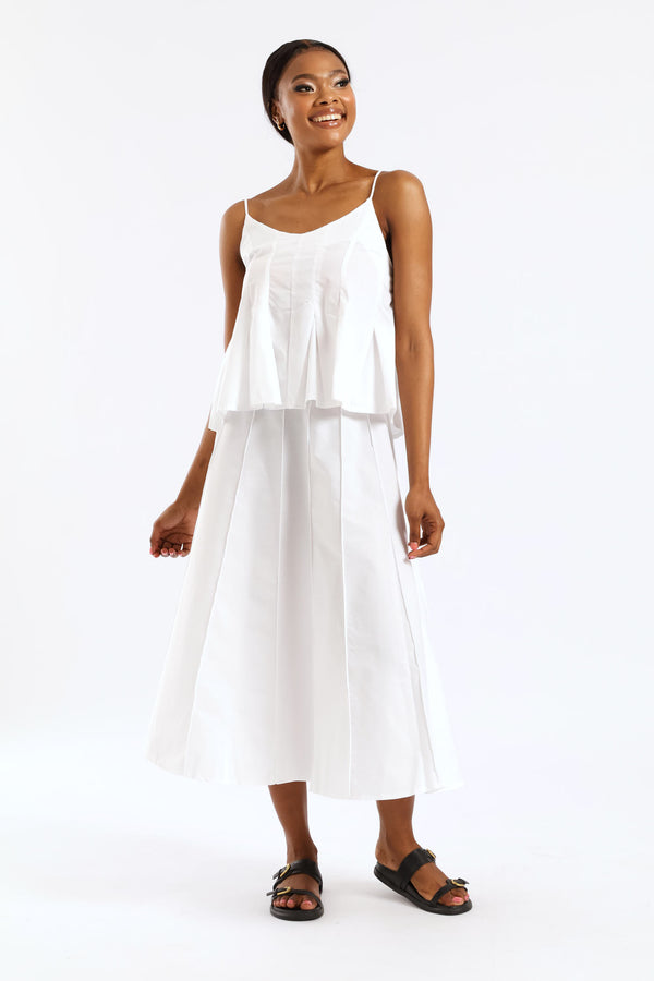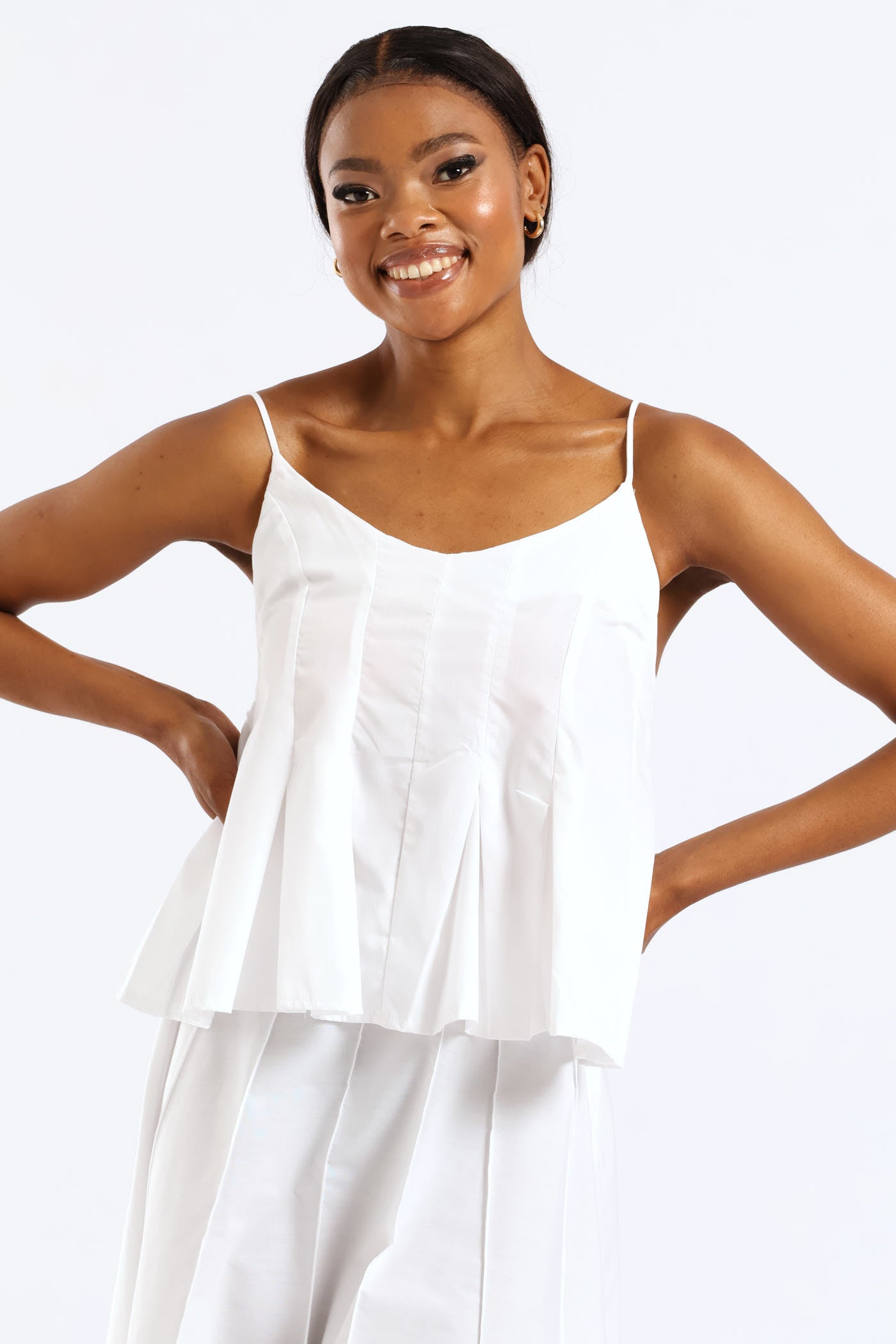 Pleated Strappy Poplin Top - White