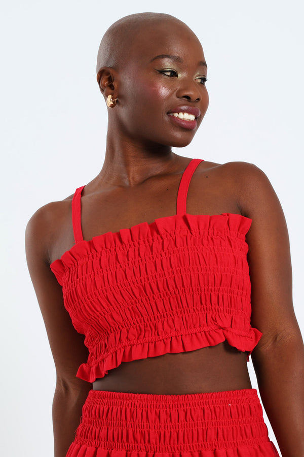 Introducing our luxurious Shirred Cotton Top in a rich shade of red. Made from high-quality cotton, this top features exquisite shirred detailing to give you a flattering silhouette. Perfect for both casual and formal occasions, this top is a must-have for any fashion-forward wardrobe. Elevate your style with this exclusive piece.
