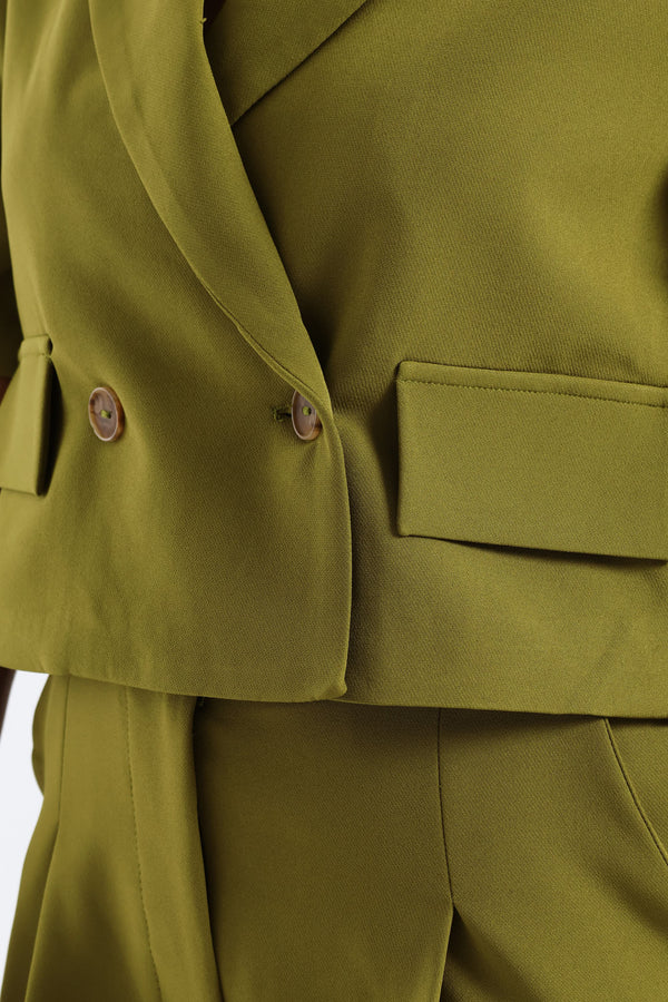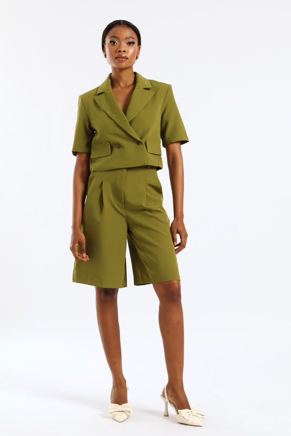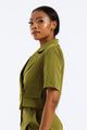 This Short Sleeve Cropped Blazer in avocado brings a fresh twist to your outfit! Perfect for layering without overheating, its playful cut adds a pop of color and style to any look. Dress it up or down for a fun, flirty finish!
