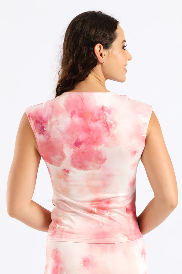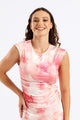 This sleeveless rouged side tie top in a vibrant multi-color palette adds a fun twist to your wardrobe. The playful side tie detail lets you customize your fit while the rouged fabric brings a flattering texture. Perfect for sunny days or layering under your favorite jacket, it’s a cheerful, easygoing piece that brightens any outfit.