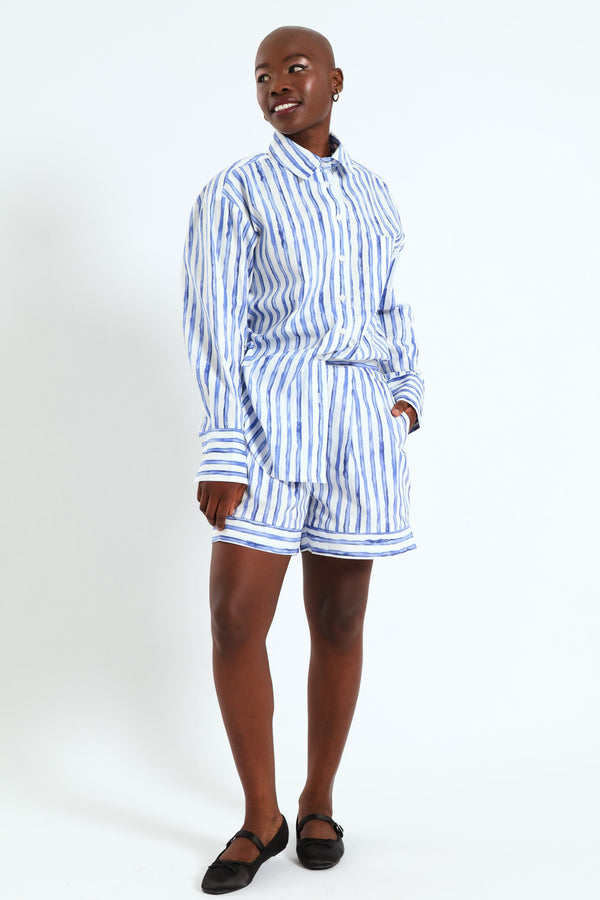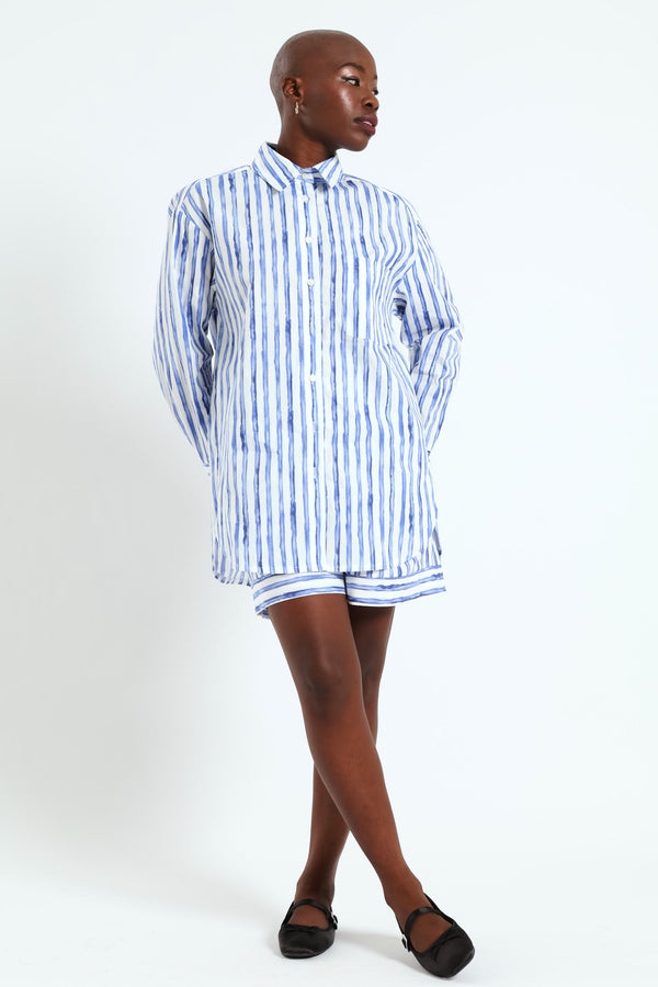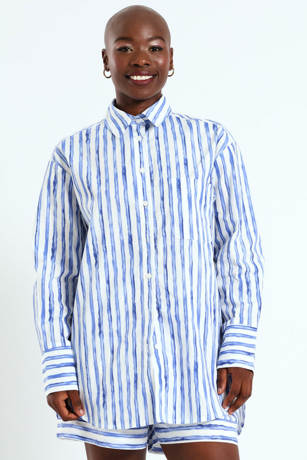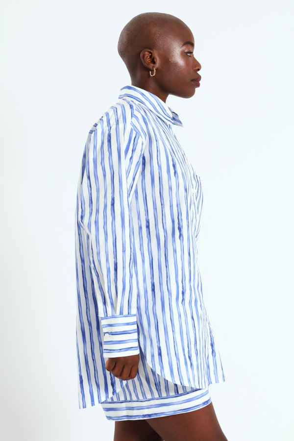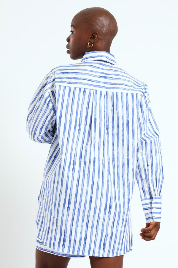 Indulge in the sophisticated elegance of our Stripe Watercolour Poplin Shirt in Blue. Made from premium poplin fabric, this shirt features a unique stripe design with a watercolour effect. Perfect for making a stylish statement, this shirt will elevate your wardrobe and add a touch of luxury to any outfit.