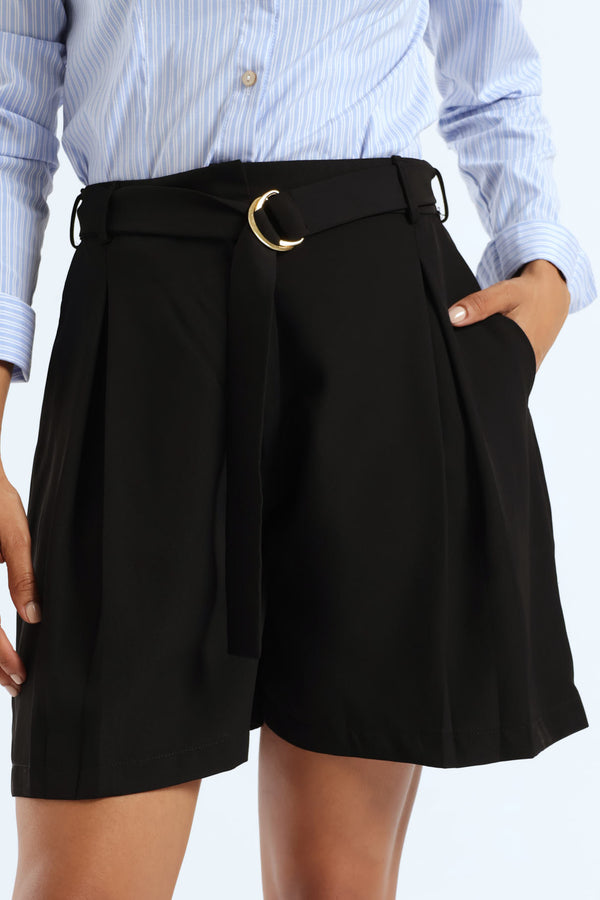 Step into style with these Black Buckle Detail Shorts that add a cheeky twist to your casual look. Playful buckle accents bring a dash of flair while the comfortable fit keeps you moving with ease. Perfect for sunny days when you want to keep it cool and fun!