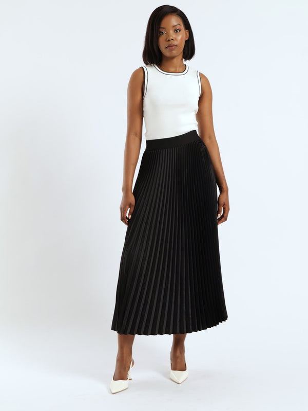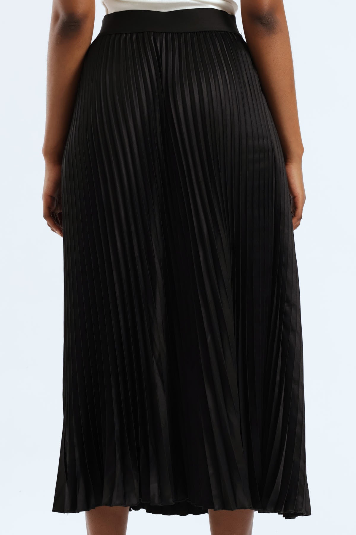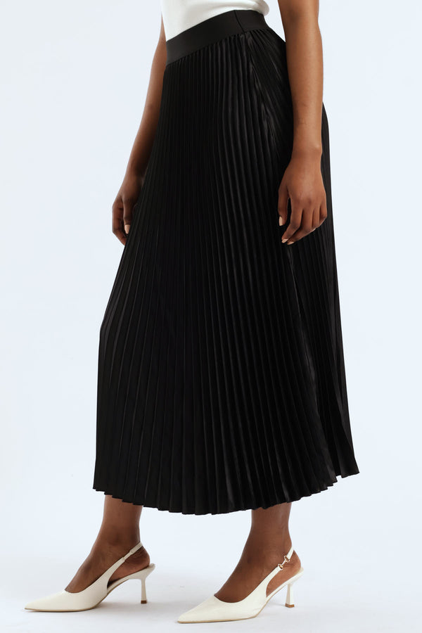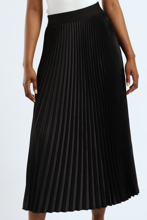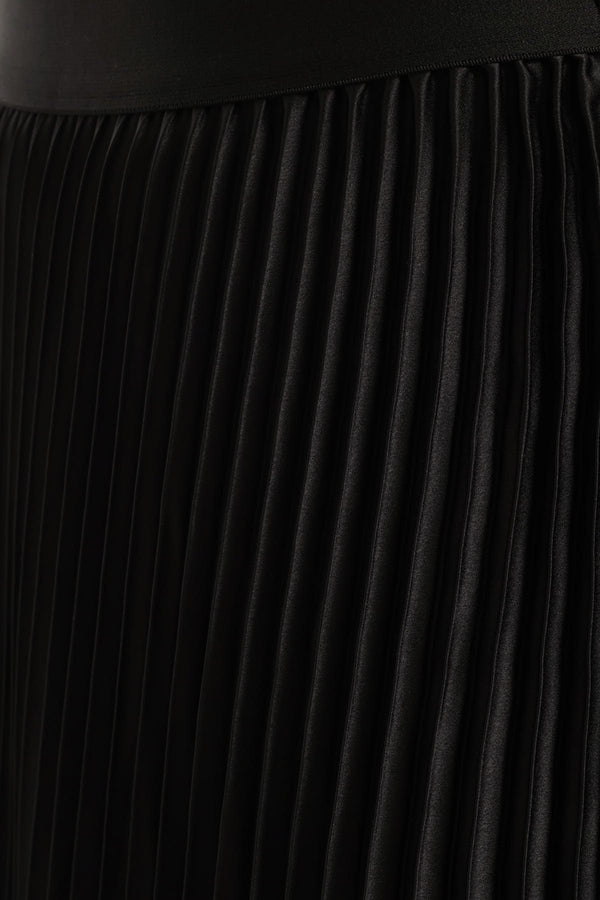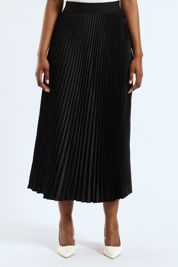 Experience timeless elegance with the Long Length Elasticated Pleated Skirt in black. This skirt combines graceful pleats with an elasticated waistband for a comfortable yet flattering fit. Its flowing silhouette enhances movement, making it perfect for both formal and casual settings. A versatile staple that effortlessly elevates any outfit with understated sophistication.