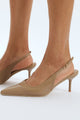 Mid Shaped Stud Detail Slingback Court Heel - Natural