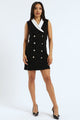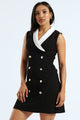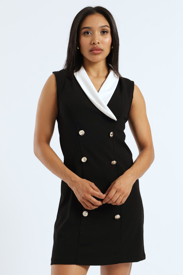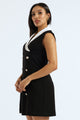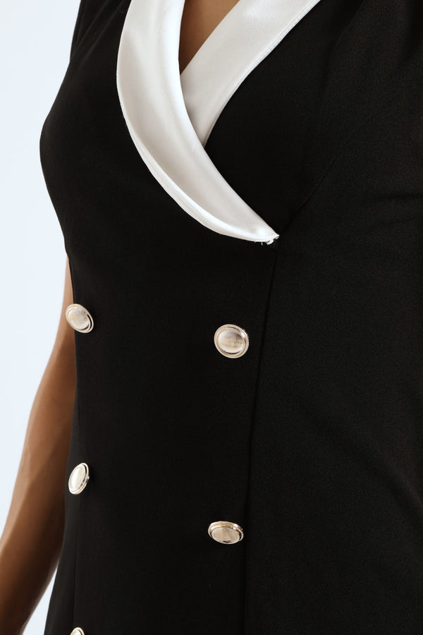 Make a bold statement in this Black and White Sleeveless Colour Block Blazer Dress. Its playful mix of sharp tailoring and striking contrast adds a fresh twist to classic sophistication. Perfect for turning heads with confidence and a touch of fun wherever you go.