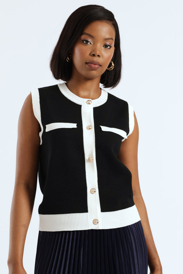 Sleeveless Contrast Knitwear Top - Black/White