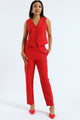 These red slimleg pants combine a tailored silhouette with a bold color for a striking yet elegant look. Designed to contour the legs smoothly, they provide a sleek foundation for both professional and stylish casual outfits. Perfect for making a confident statement with refined simplicity.