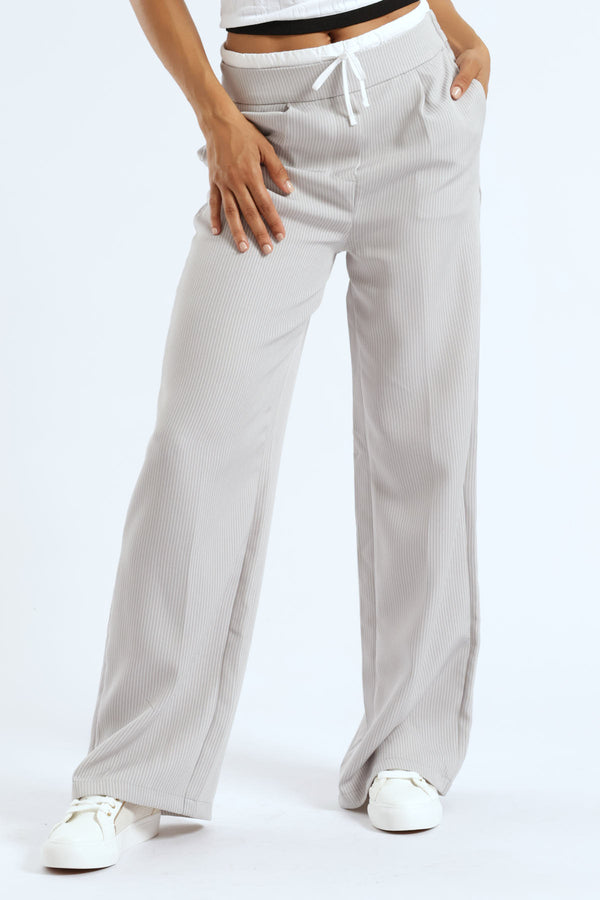 Elevate your style game with the Wideleg Tuxedo Pants in Grey/White. With their bold contrast stripes and flowing wide-leg design, these pants bring a fresh twist to classic tuxedo vibes. Perfect for making a statement at any event, they combine comfort with a splash of daring flair. Feel fabulous and ready to strut your stuff wherever you go!
