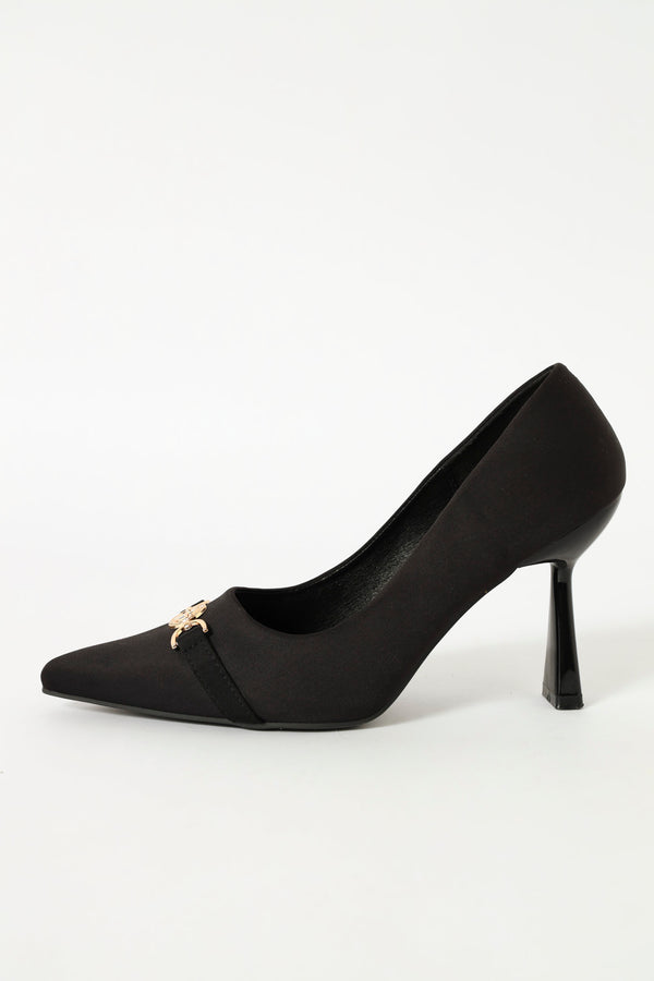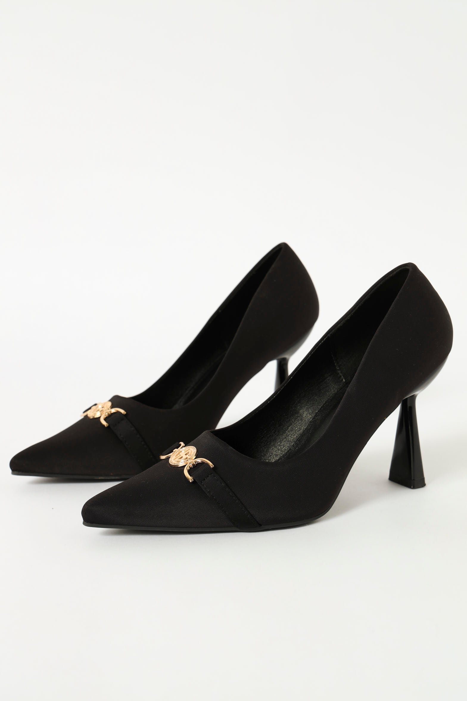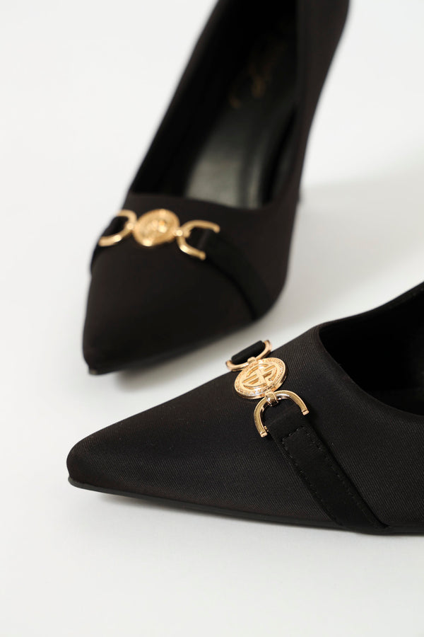 Make a bold statement in black. These monogram heels deliver timeless style with personality, keeping you confident and grounded wherever you go.
