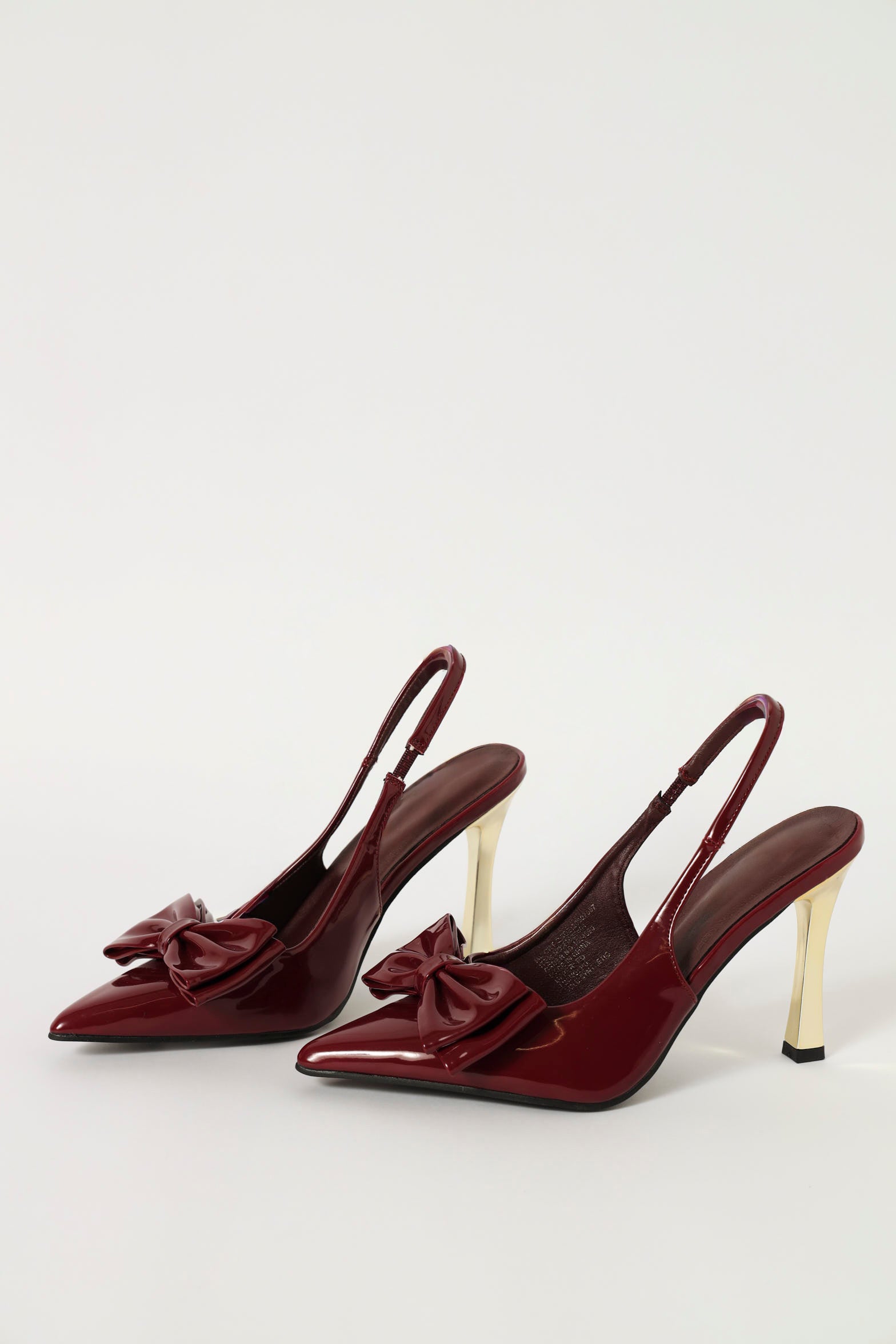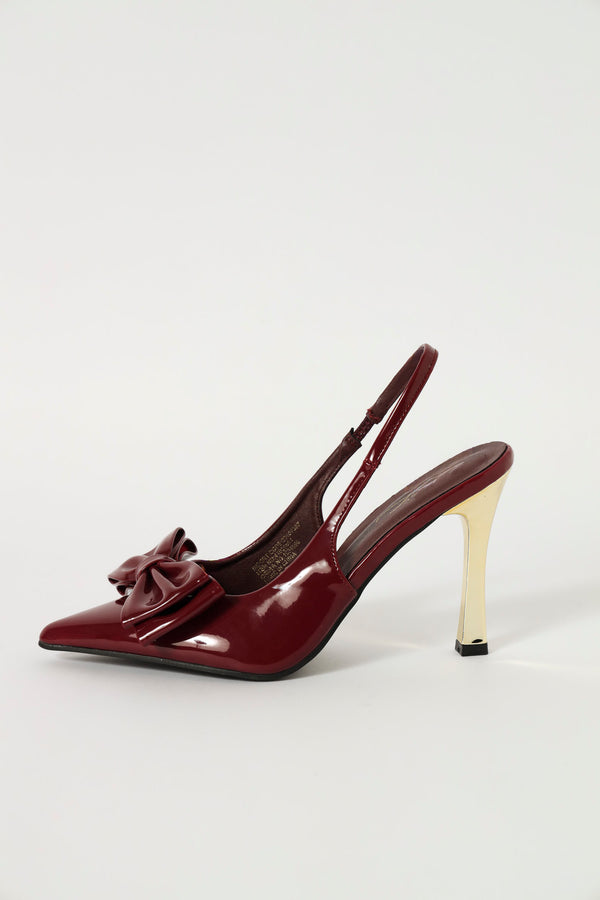 High Shaped Patent Bow Court Ankle Buckle- Burgundy