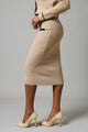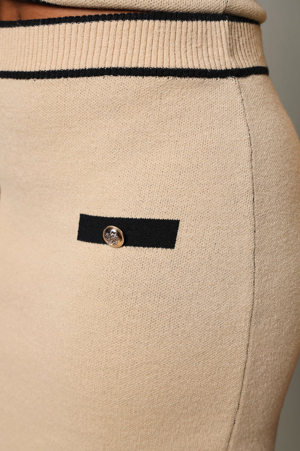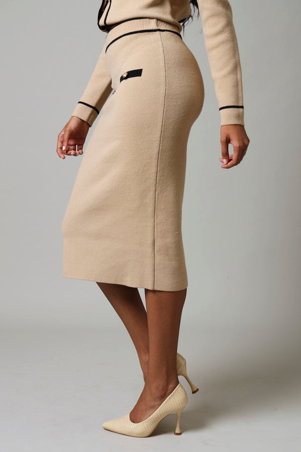 Midi Knitwear 2 Tone Button Skirt - Beige/Black