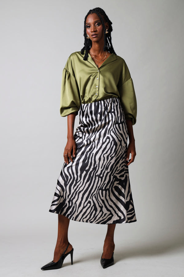 Satin Slip Skirt - Black/Cream