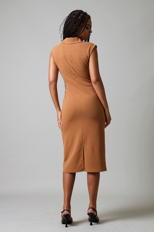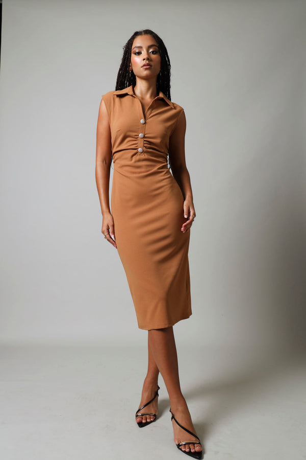 Short Sleeve Collared Bodycon Dress - Tobacco