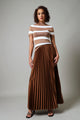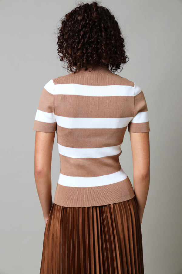 Short Sleeve Stripe Knitwear Top - Beige/White