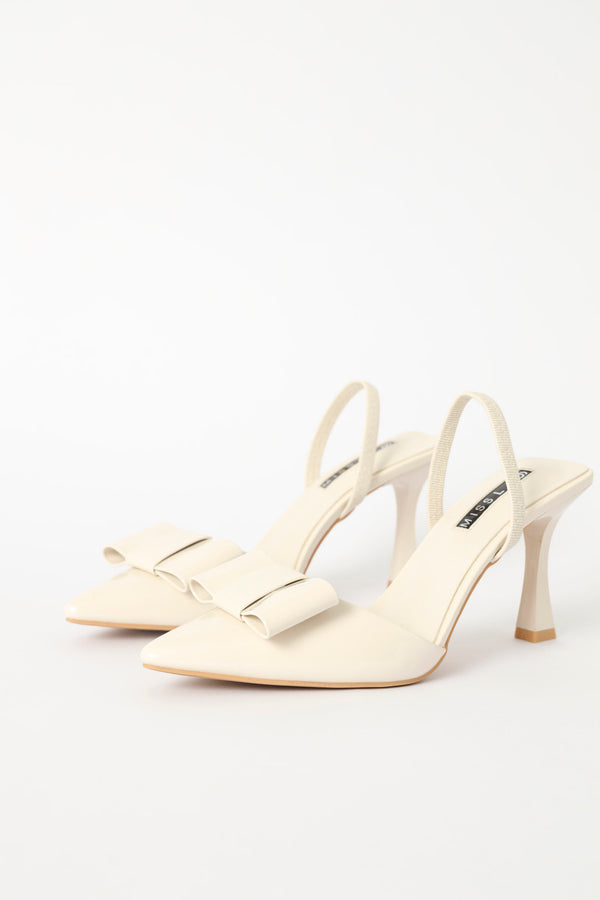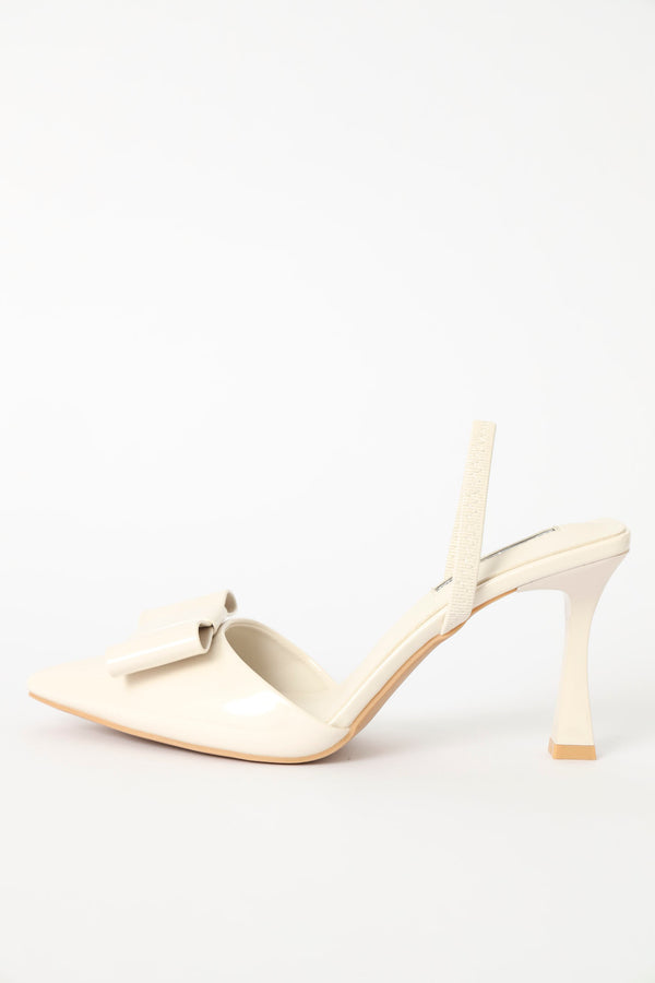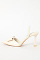 Straight Cut Bow Pointy Slingback Heel - Off White