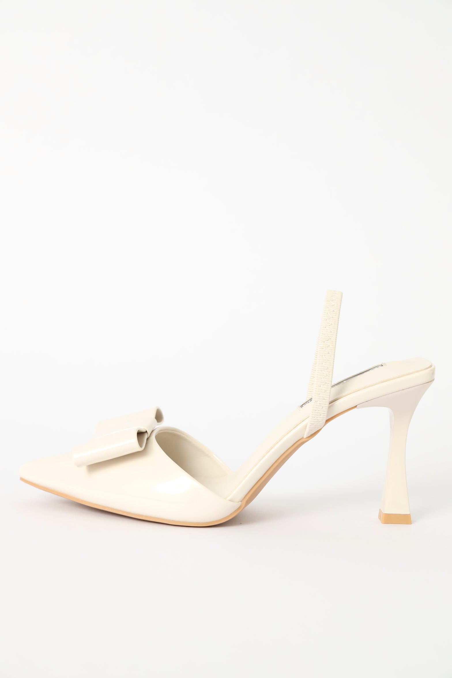Elevate your everyday elegance with this striking slingback heel. The pointed toe creates a sleek silhouette, while the delicate bow detail at the back adds a touch of feminine charm. Crafted in soft off-white, this versatile shoe transitions seamlessly from office to evening. The slingback design ensures a secure, comfortable fit that moves with you. Perfect for those who appreciate timeless style with modern flair.