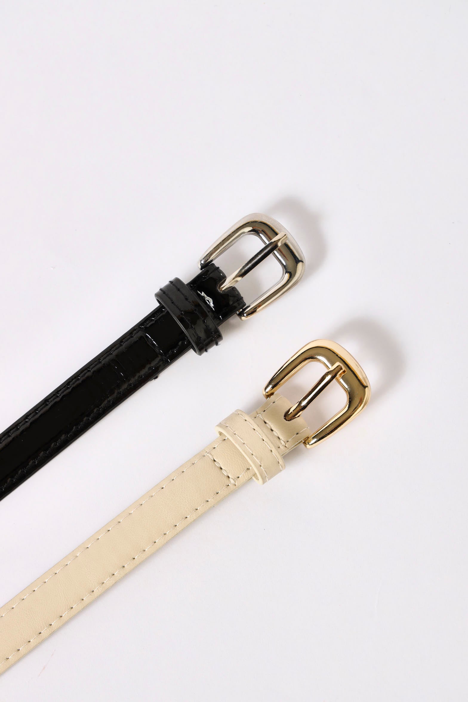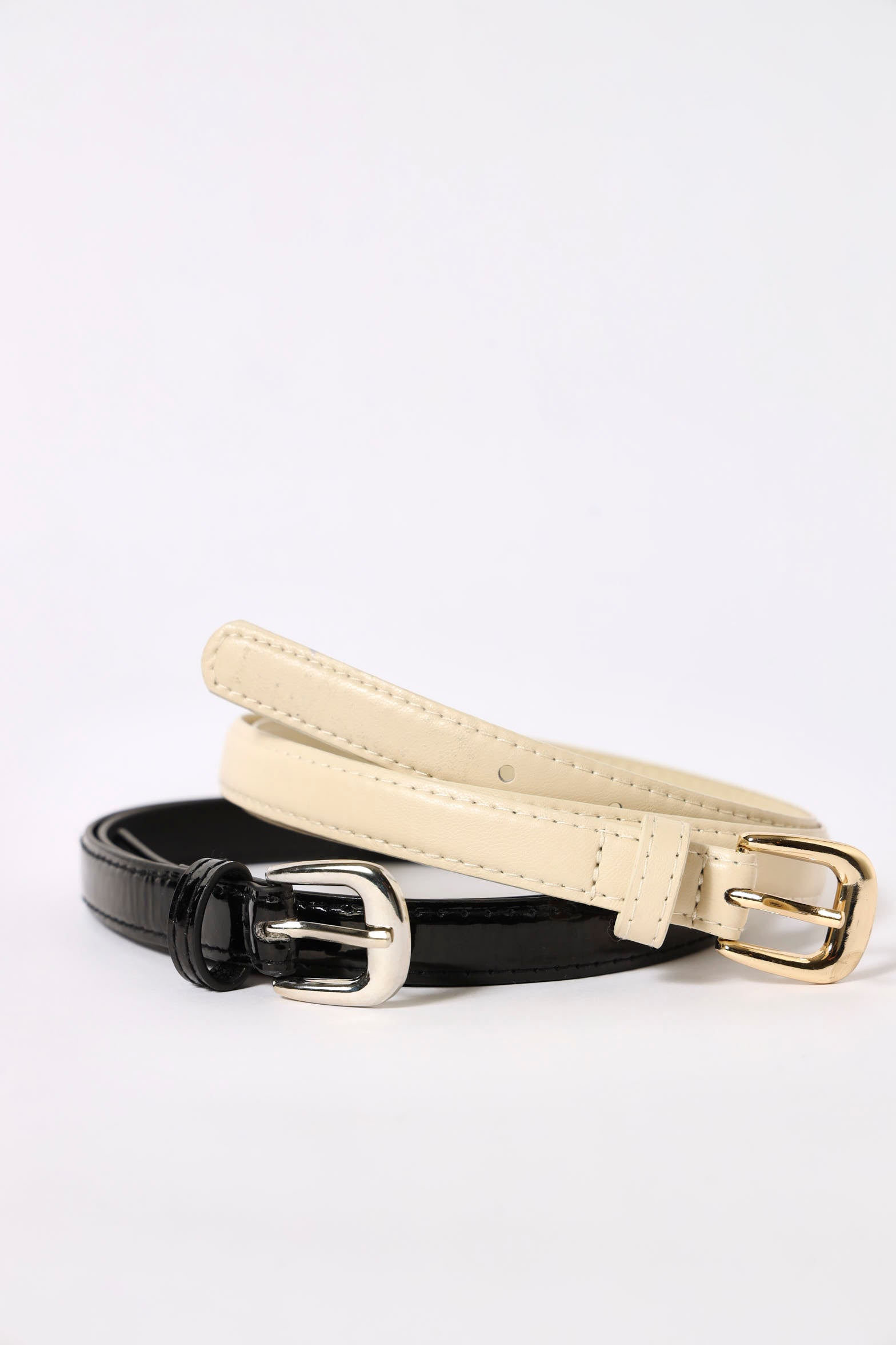 Cinch your style with this fun 2-pack of skinny belts in timeless black and cream. These sleek accessories are your secret weapon for instantly elevating any outfit—cinch a dress, define your waist, or add attitude to casual looks. The slim profile works under layers or as a statement piece, giving you endless styling possibilities. Quality construction means they'll stay looking sharp through countless outfit changes. Double the belts, double the wardrobe transformations.