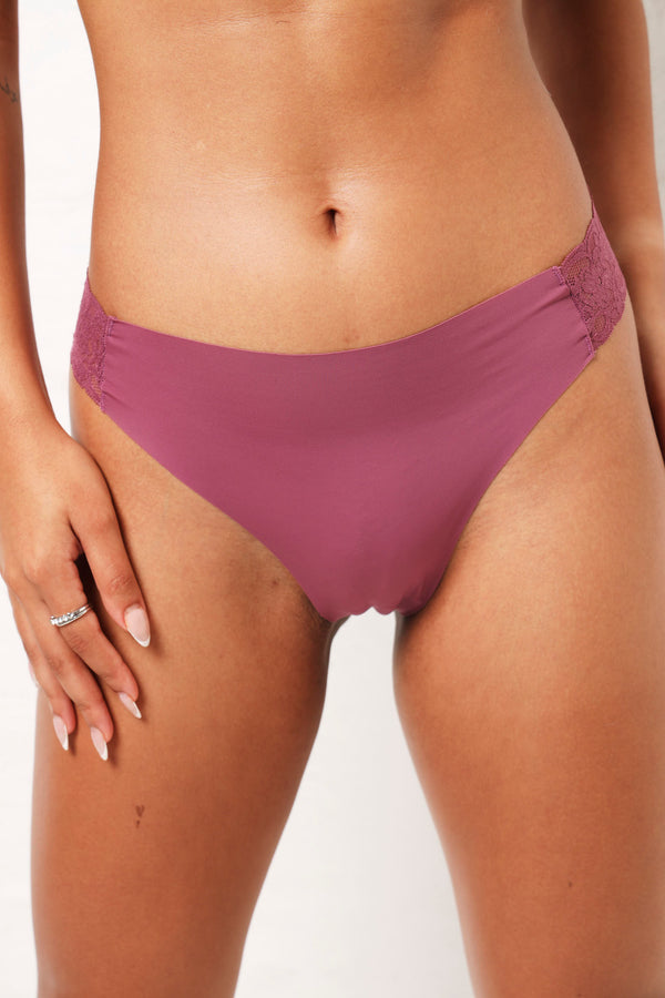 Slip into comfort with this cheeky trio of microfiber g-strings designed for the modern wardrobe. Crafted from soft, breathable microfiber with delicate lace detailing, each pair delivers a barely-there feel that works seamlessly under any outfit. The mauve hue adds a touch of understated elegance to your essentials collection. With three pairs in one pack, you'll always have a fresh option on hand. Perfect for everyday wear or special occasions, these g-strings combine practicality with a hint of playful style.