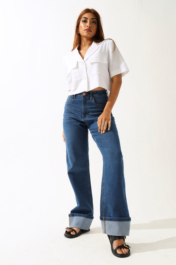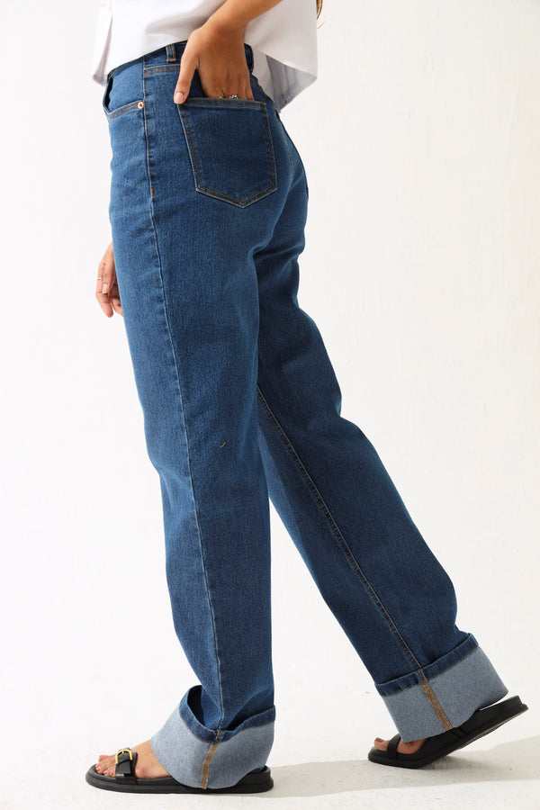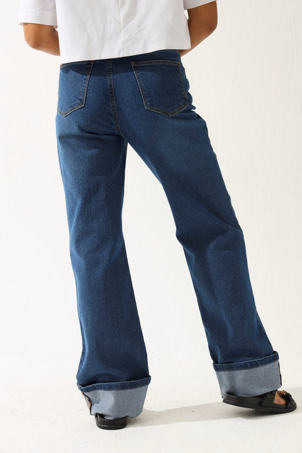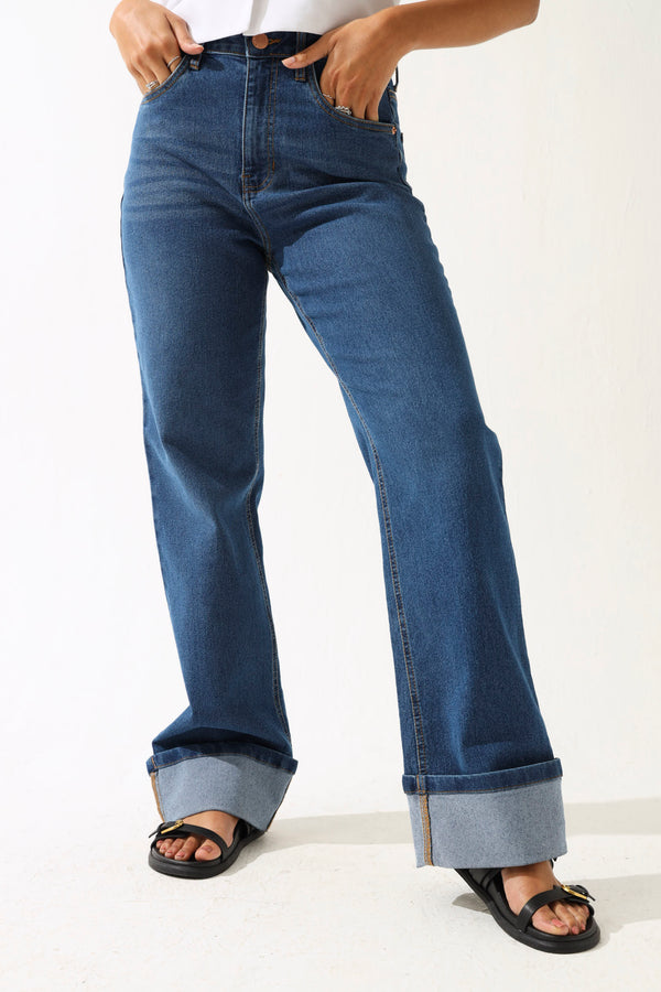 Basic Turn Up Wide Leg Jean - Medium Wash