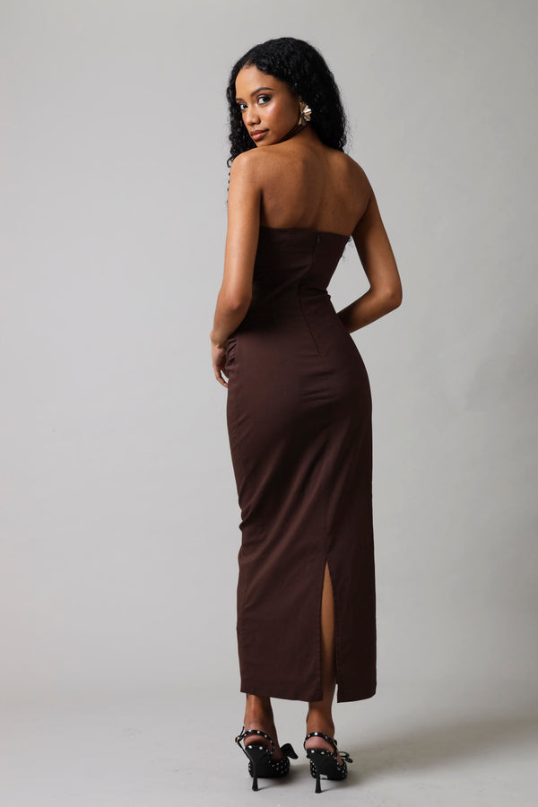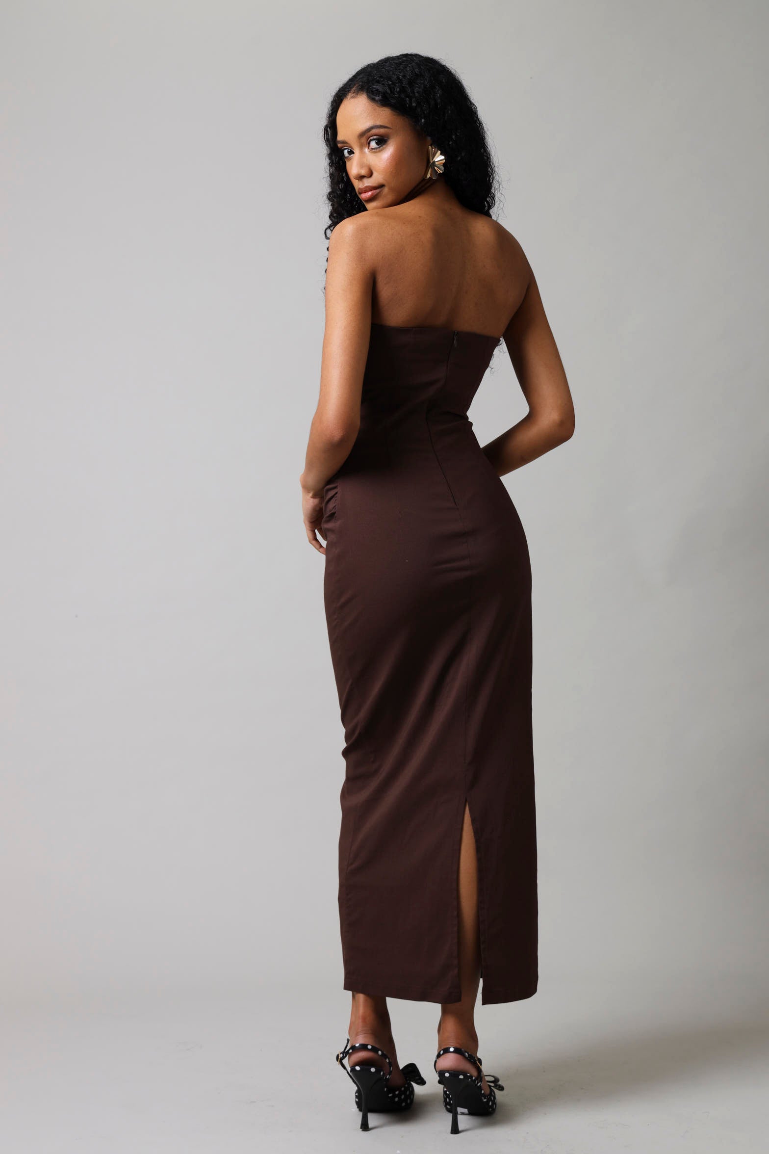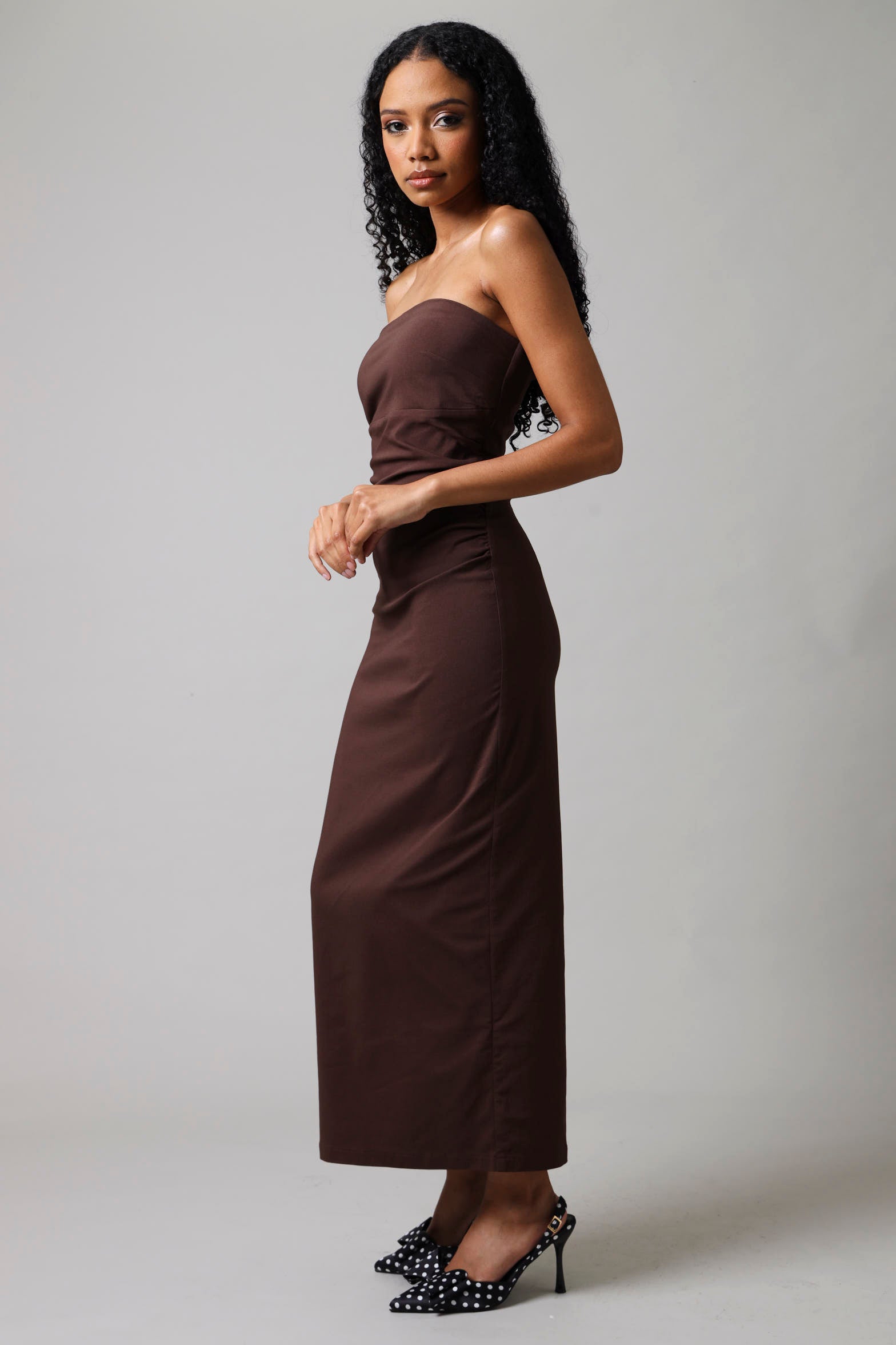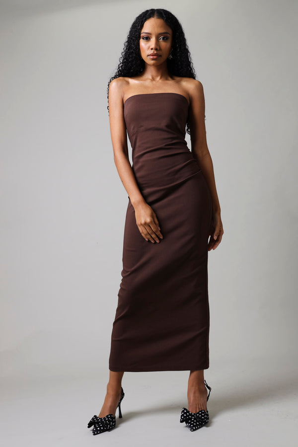 Turn heads in this cheeky boobtube dress crafted from smooth bengaline fabric. The strapless silhouette offers effortless elegance while the rich brown tone works with everything in your wardrobe. Whether you're heading out for a night on the town or dressing up a casual weekend, this versatile piece delivers confidence and style in one fabulous package. Simple, stunning, and ready for whatever you throw at it.