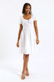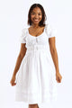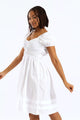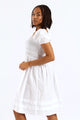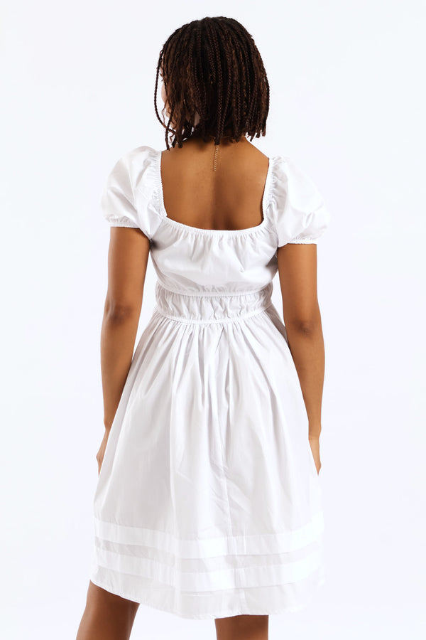 Elevate your wardrobe with the Bow Tie Poplin Mini Dress in White. Crafted from crisp poplin fabric, this dress features an elegant bow tie detail that adds a refined touch to its classic silhouette. Its tailored fit and mini length balance sophistication with a contemporary edge, making it perfect for both daytime events and evening occasions. Embrace timeless style with effortless charm in this versatile piece.