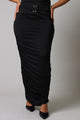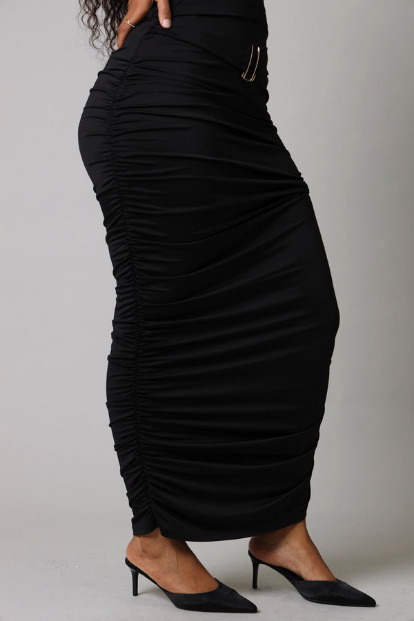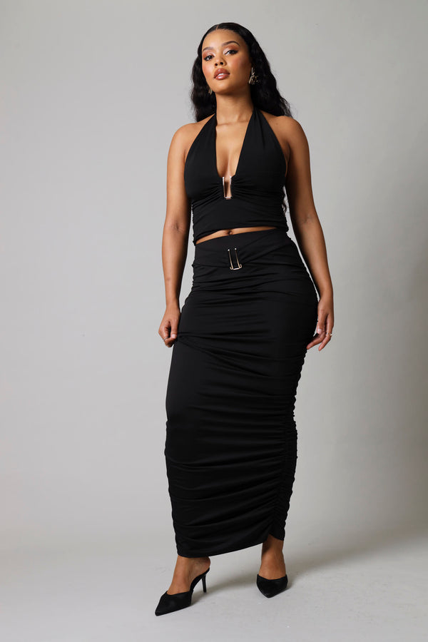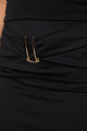 Slip into effortless elegance with this sleek black slinky skirt that hugs your curves in all the right ways. The standout buckle detail adds a touch of edge and personality, transforming a simple silhouette into a statement piece. Perfect for dressing up or down, this versatile skirt transitions seamlessly from day to night. The fluid fabric drapes beautifully, giving you that coveted sophisticated vibe without sacrificing comfort. Whether you're heading to brunch or a night out, this skirt is your go-to for looking polished and put-together.