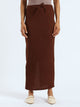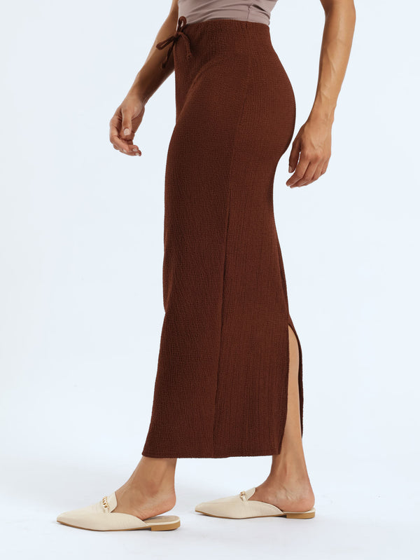 Crinkle Knit Tie Front Maxi Skirt - Chocolate