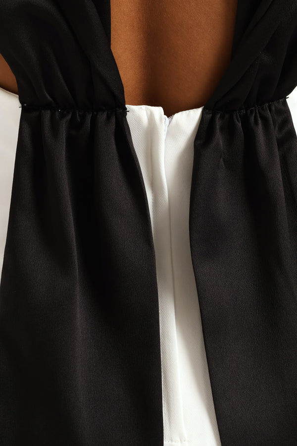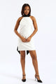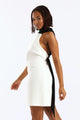 Turn up the fun with the Halter Neck Mini Dress in bold White and Black. Its flirty halter style and playful contrast colors make it a standout choice for dancing, dazzling, and owning every moment with confidence!