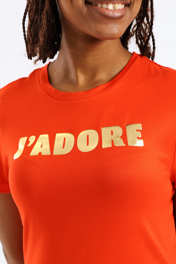 Add a pop of fun to your everyday look with the J'Adore Regular Tee in vibrant Red. Its playful color and classic fit make it a go-to for effortless style, whether layered or worn on its own. Perfect for spreading good vibes wherever you go!